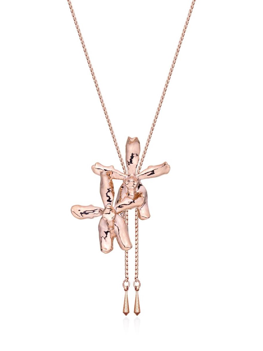 Dây chuyền dài hoa lan Renanthanda mạ vàng hồng