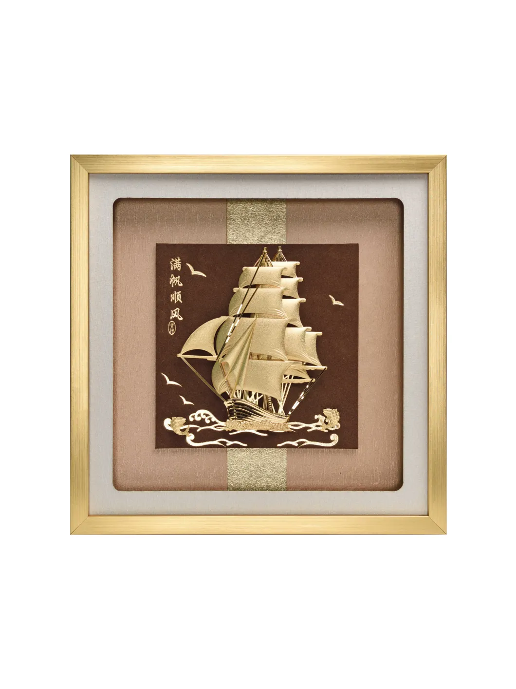 Theo phong thủy, thuyền buồm được xem là biểu tượng của thành công trong kinh doanh, mang ý nghĩa thuận buồm xuôi gió, đi đến nơi về đến chốn. Thường được sử dụng làm quà tặng giữa các đối tác kinh doanh. Chất liệu: vàng lá. Bảo quản nơi khô ráo. Kích thước: 30 x 30 cm