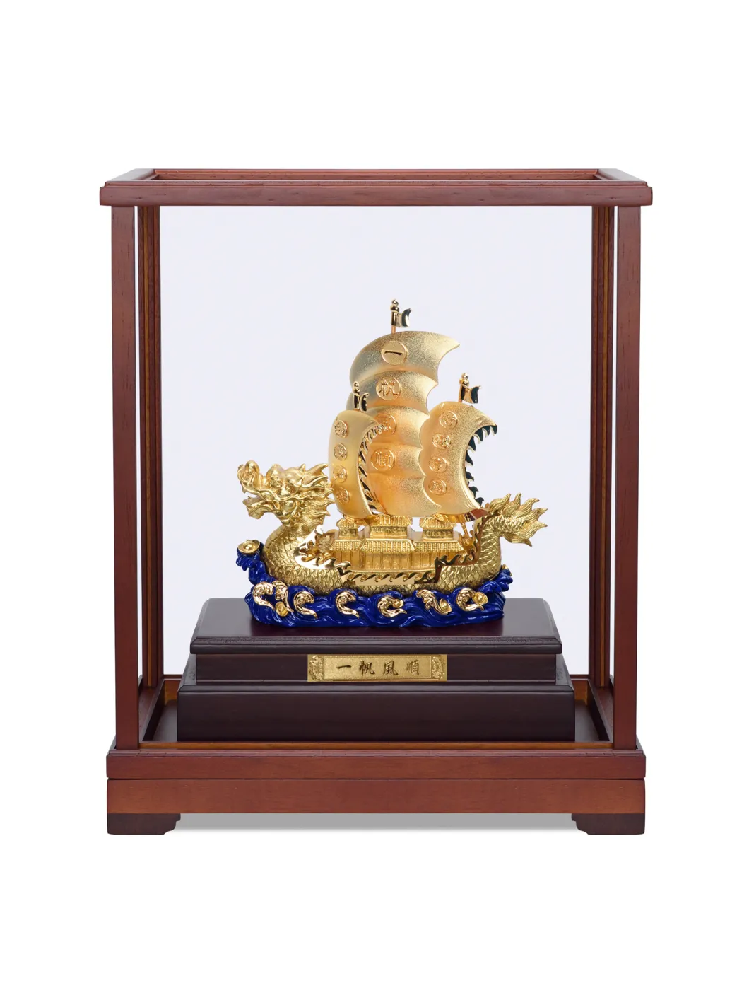 Thuyền Rồng mang rất nhiều ý nghĩa và được xem là biểu tượng của sự thành công trong công việc. Bởi thuyền buồm là sự thuận buồm xuôi gió, mọi việc thuận lợi, khó khăn nào cũng có thể vượt qua một cách dễ dàng. Chất liệu: vàng lá. Bảo quản nơi khô ráo. Kích thước:29x17x36cm