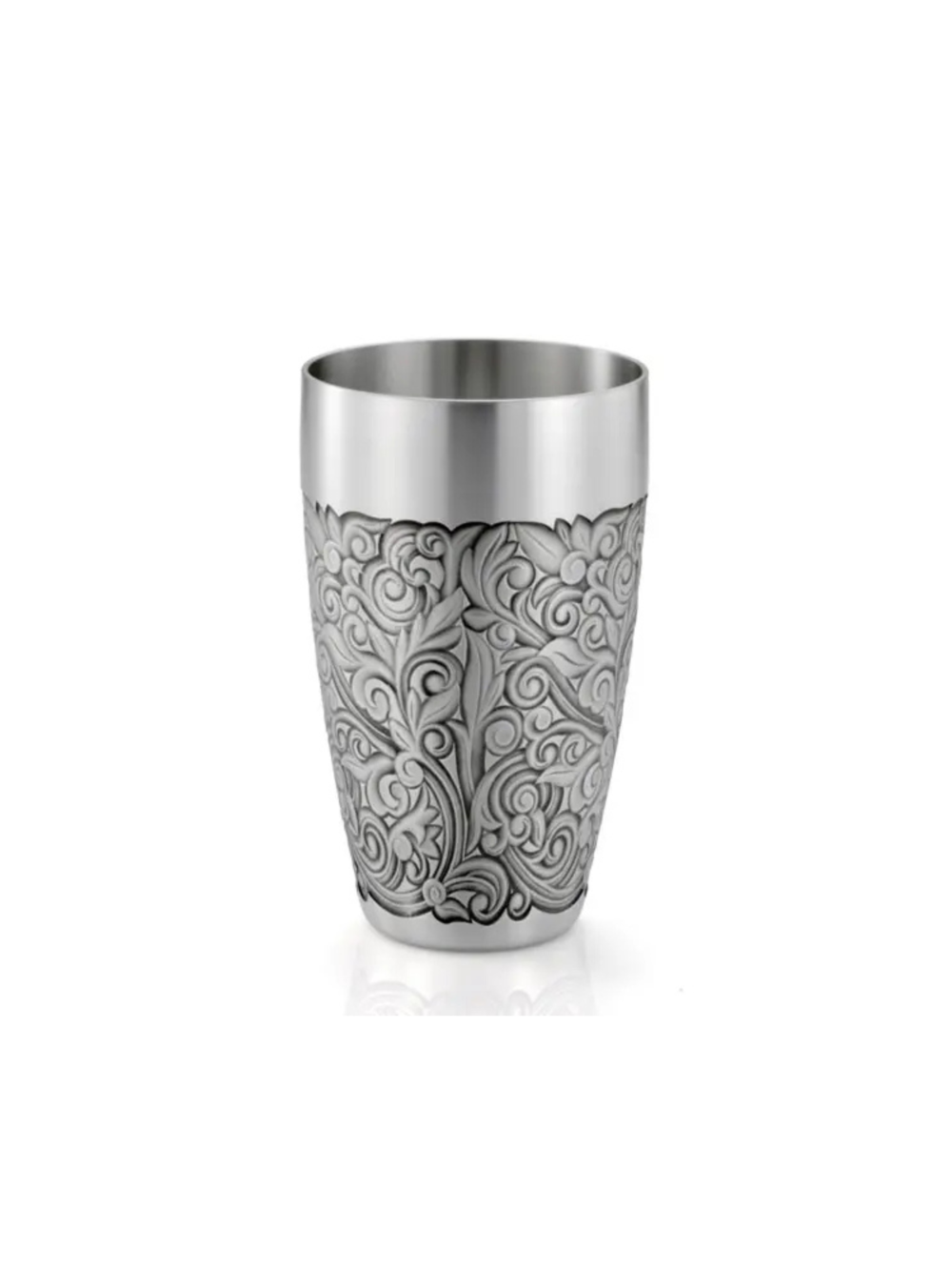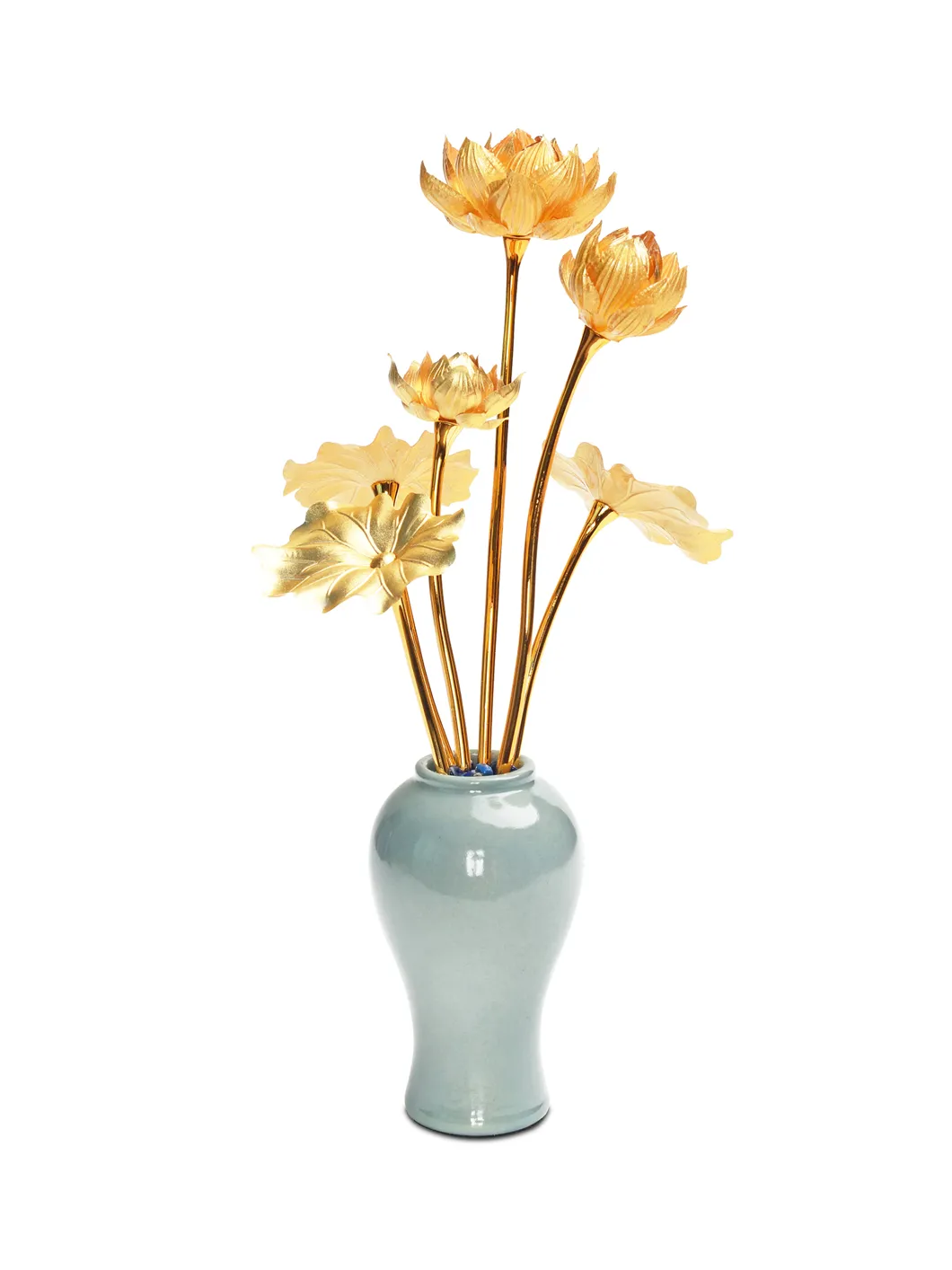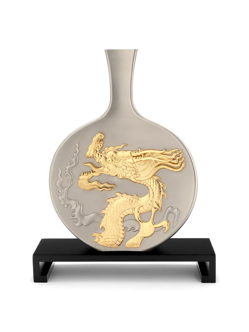 Nằm trong BST Cảm xúc và Ký ức, bình hoa mang tên “Vườn hương” với họa tiết hoa lan châu Phi bao quanh chiếc bình thủy tinh. Phía dưới dây hoa lan là những bông hoa hồng đua nở. Sản phẩm được làm từ thủy tinh và pewter cao cấp