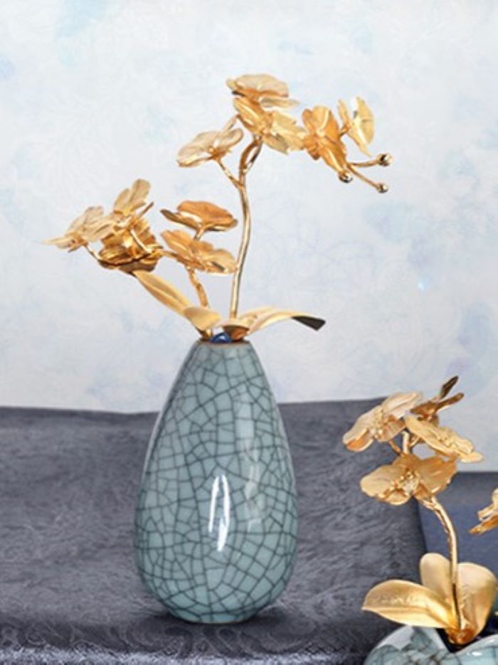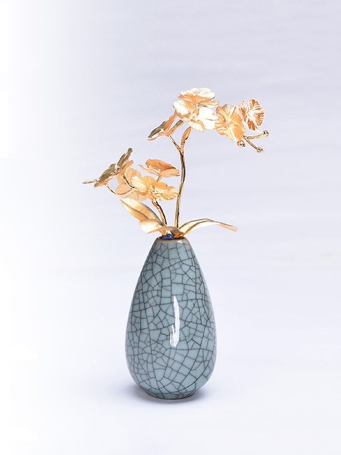 Bình Hoa Lan Hồ Điệp 02 là sự kết hợp hoàn hảo giữa nghệ thuật chế tác thủ công và phong thủy. Với chất liệu vàng lá 24K tinh xảo, sản phẩm mang vẻ đẹp rực rỡ, sang trọng, đồng thời chứa đựng ý nghĩa sâu sắc về tài lộc, hạnh phúc và sự hoàn mỹ. Ý nghĩa: Hoa lan hồ điệp, biểu tượng của sự sinh sôi nảy nở, mang lại may mắn, tài lộc và sự toàn mỹ. Được mệnh danh là "nữ hoàng các loài hoa lan," hoa lan hồ điệp xua tan tà khí, kích hoạt năng lượng tích cực và đem lại vượng khí cho không gian sống. Ý nghĩa về tình yêu và hôn nhân: Trong tình yêu, hoa lan hồ điệp đại diện cho sự thủy chung, hạnh phúc viên mãn và sự gắn bó bền lâu. Chất liệu: Chậu hoa được chế tác từ vàng lá 24K cao cấp, với độ bền và tính thẩm mỹ vượt trội. Mỗi chi tiết đều được hoàn thiện thủ công tinh xảo, mang lại giá trị cao về cả vật chất lẫn tinh thần. Kích thước: 6 x 13 x 19 cm Sự lựa chọn hoàn hảo: Chậu cây hoa lan hồ điệp dát vàng là món quà ý nghĩa cho các dịp đặc biệt như: Quà tặng kinh doanh: Tạo ấn tượng và truyền tải lời chúc thành công, tài lộc đến đối tác và khách hàng. Quà tặng tân gia, sinh nhật, lễ Tết: Mang lời chúc phúc viên mãn, trọn vẹn và rực rỡ như đóa hoa lan. Quà tặng hôn nhân: Biểu tượng cho tình yêu thủy chung, giúp hâm nóng tình cảm và gia tăng sự gắn kết giữa các cặp đôi. Chậu cây không kén mệnh, tuổi, phù hợp để bày trí tại phòng khách, phòng làm việc hoặc phòng ngủ, giúp gia tăng tài vận, tình cảm và sự nghiệp cho gia chủ.