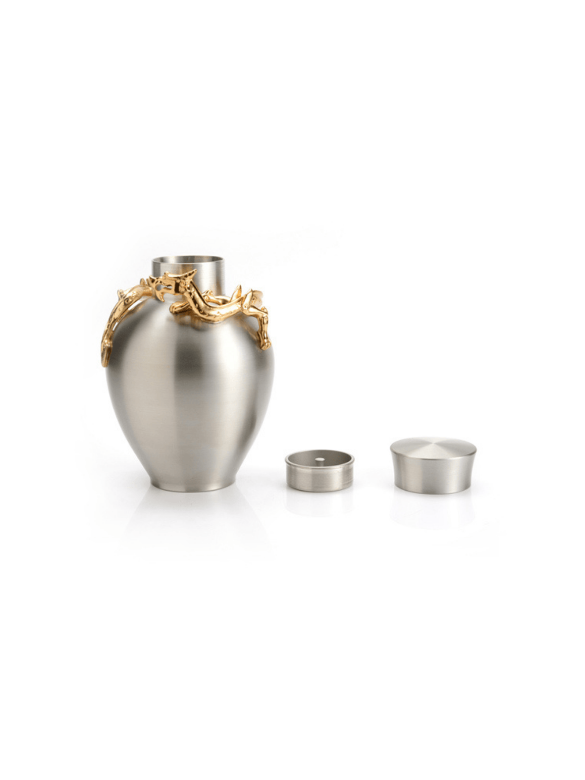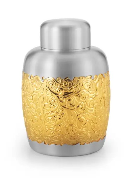 Bình trà Rồng Vàng là tuyệt tác kết hợp giữa thủ công truyền thống và nghệ thuật đương đại. Thiết kế nổi bật với hình tượng rồng uốn lượn uy nghiêm, được mạ vàng 24K, tượng trưng cho quyền lực, vượng khí và sự thịnh vượng. Sản phẩm được trang bị hệ thống 2 nắp đẩy khí, giúp bảo quản trà kín khí, lưu giữ hương vị và tinh chất của từng lá trà trong thời gian dài. Ý nghĩa: Ý nghĩa thiết kế: Hình ảnh rồng vàng mạ 24K không chỉ là điểm nhấn nghệ thuật mà còn truyền tải năng lượng tích cực, thịnh vượng và uy quyền cho không gian sống. Ý nghĩa phong thủy: Rồng là biểu tượng tối cao trong văn hóa Á Đông, đại diện cho may mắn, công danh, phú quý và sự bảo hộ. Trưng bày hoặc sử dụng bình trà rồng sẽ góp phần kích hoạt tài vận và sự hanh thông trong công việc lẫn cuộc sống. Chất liệu: Pewter cao cấp không chứa chì, được kiểm định an toàn vệ sinh thực phẩm. Họa tiết rồng điêu khắc tinh xảo, mạ vàng 24K sang trọng. Kích thước: Chiều cao: 12cm Đường kính: 8.5cm Hướng dẫn sử dụng: Dùng để bảo quản trà, thảo mộc, hoặc nguyên liệu khô cao cấp. Tránh tiếp xúc trực tiếp với nước. Vệ sinh bằng khăn mềm, khô. Đặt ở nơi thoáng mát, khô ráo. Sự lựa chọn hoàn hảo: Bình trà Rồng Vàng không chỉ là vật dụng bảo quản trà thông thường, mà còn là biểu tượng phong thủy và món quà sang trọng. Phù hợp làm quà tặng đối tác, khách hàng VIP, quà biếu Tết hoặc kỷ niệm các dịp trọng đại – đặc biệt ý nghĩa với những người yêu văn hóa phương Đông và nghệ thuật sưu tầm.