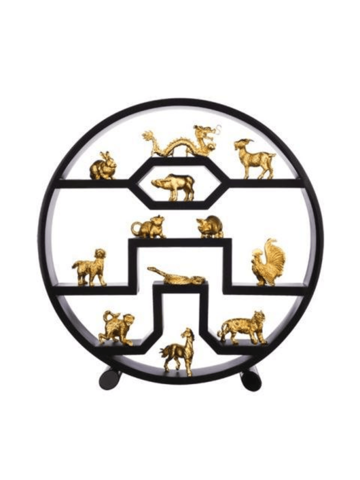 Bộ 12 con giáp mạ vàng 24K được sắp xếp nghệ thuật trên một đế gỗ tròn mang phong cách cổ điển phương Đông. Mỗi linh vật được chế tác tỉ mỉ, phủ vàng rực rỡ, thể hiện hình tượng đặc trưng của từng tuổi trong văn hóa Á Đông. Ý nghĩa: 12 con giáp tượng trưng cho vòng tuần hoàn thời gian, luân hồi và vận mệnh của con người theo âm lịch phương Đông. Mỗi linh vật đại diện cho một nét tính cách, vận mệnh và tài lộc riêng biệt. Việc sở hữu đầy đủ 12 con giáp mang ý nghĩa cân bằng, hài hòa âm dương ngũ hành, giúp thu hút tài lộc, sức khỏe và may mắn quanh năm. Đế gỗ tròn thể hiện sự viên mãn, tròn đầy – biểu tượng của một cuộc sống đủ đầy, sung túc và hạnh phúc. Chất liệu: 12 linh vật bằng hợp kim cao cấp, phủ vàng Thụy Sĩ 24K Kệ trưng bày bằng gỗ sơn đen vững chắc, tinh tế trong từng chi tiết. Kích thước tổng thể: Dài: 31 cm Rộng: 4 cm Cao: 38 cm Sự lựa chọn hoàn hảo: Phù hợp làm quà tặng cao cấp nhân dịp năm mới, khai trương, tân gia, sinh nhật… Đặt trong phòng khách, phòng làm việc hoặc bàn thờ thần tài giúp tăng vượng khí và tạo điểm nhấn phong thủy độc đáo. Là món quà doanh nghiệp tinh tế và giàu ý nghĩa cho đối tác, khách hàng quan trọng.