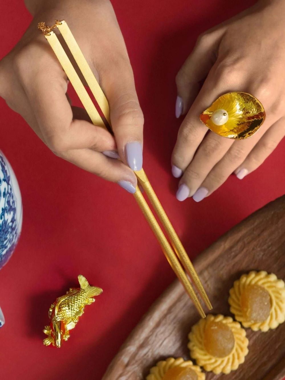 Câu chuyện: Tại chốn hoang sơ đầy thử thách hay trong dòng nước dịu dàng của ao vườn, chú cá chép khiêm nhường ẩn chứa một bản chất mạnh mẽ, phong phú. Giữa dòng sông hung dữ, nó kiên cường vượt dòng chảy, chứng minh sự làm chủ cuộc đời. Sự bền bỉ ấy, kết hợp với may mắn hiếm có, đã khiến cá chép từ bao đời trở thành biểu tượng của tài lộc và an lành. Những gia đình hình thành từ hôn nhân xem cá chép như bài học về ý chí vượt khó. Bên cạnh sự kiên trì, giao tiếp là chìa khóa cân bằng hòa khí gia đình. Trên khắp thế giới, gia đình gắn kết bên mâm cơm, nơi bữa ăn và câu chuyện thắt chặt tình thân. Tại hàng triệu mái ấm Á Đông và Việt Nam, hình ảnh đôi đũa mộc mạc trên khăn trải bàn trắng, hòa cùng hương thơm bếp núc, là biểu tượng của hy vọng và tương lai tươi sáng. RISIS tự hào giới thiệu bộ 6 đôi đũa mạ vàng Thụy Sĩ 24K tinh xảo, cùng giá kê hình cá chép bọc vàng - tuyệt phẩm kết hợp nghệ thuật và ý nghĩa sâu sắc. Sản phẩm: Bộ đũa cao cấp gồm 6 đôi được chế tác tinh xảo đi kèm với giá kê đũa hình cá chép mạ vàng. Đây không chỉ là dụng cụ dùng bữa mà còn mang giá trị văn hóa và phong thủy sâu sắc, là món quà ý nghĩa cho gia đình, đối tác hoặc người thân. Ý nghĩa phong thủy: Đôi đũa: Tượng trưng cho sự gắn kết, hòa thuận và hạnh phúc trong mỗi bữa cơm gia đình. Là lời chúc cho một cuộc sống ấm no và viên mãn. Giá kê đũa cá chép: Cá chép trong văn hóa Á Đông là biểu tượng của sự thành đạt, thịnh vượng và "cá chép hóa rồng" - ý nghĩa vượt qua khó khăn để đạt được thành công. Chất liệu: Đũa: Kim loại cao cấp, bọc vàng 24K, đảm bảo độ bền và vẻ đẹp sang trọng. Giá kê đũa: Hình cá chép mạ vàng, được chế tác tỉ mỉ với độ chi tiết cao. Kích thước: Đũa: Dài 21 cm - thiết kế vừa tay, phù hợp cho mọi bữa ăn. Giá kê: Kích thước nhỏ gọn, tiện lợi khi sử dụng. Số lượng: 6 đôi đũa kèm 6 giá kê đũa. Lựa chọn lý tưởng: Bộ 6 đôi đũa và giá kê đũa cá vàng là sự kết hợp hoàn hảo giữa tiện ích và thẩm mỹ. Đây là món quà tuyệt vời cho những dịp đặc biệt như lễ Tết, kỷ niệm, hoặc làm quà tặng đối tác, thể hiện sự trân trọng và lời chúc phúc tốt đẹp.