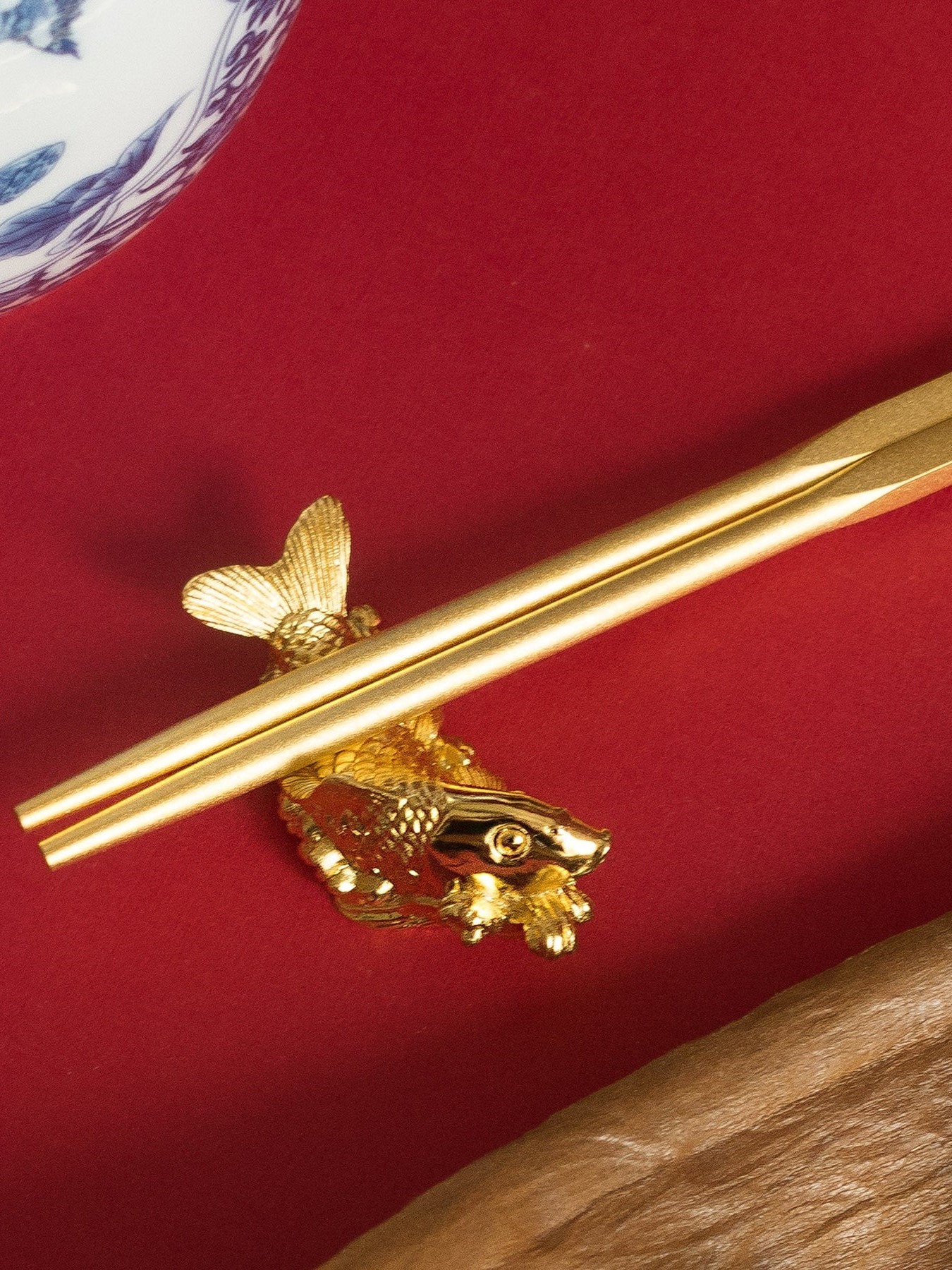 Bộ 6 đôi đũa và giá kê đũa cá vàng