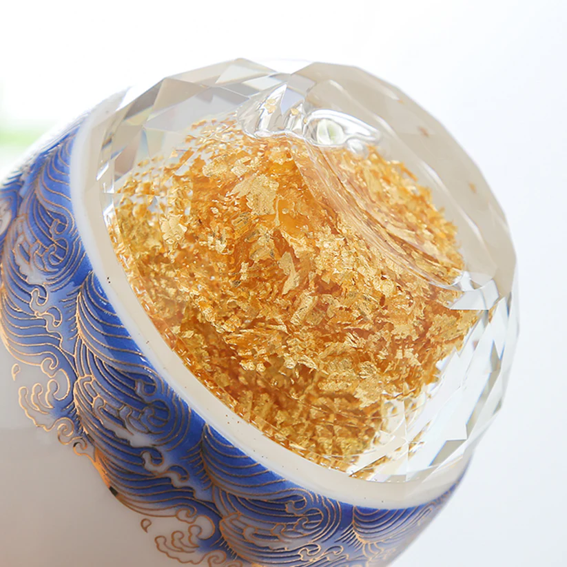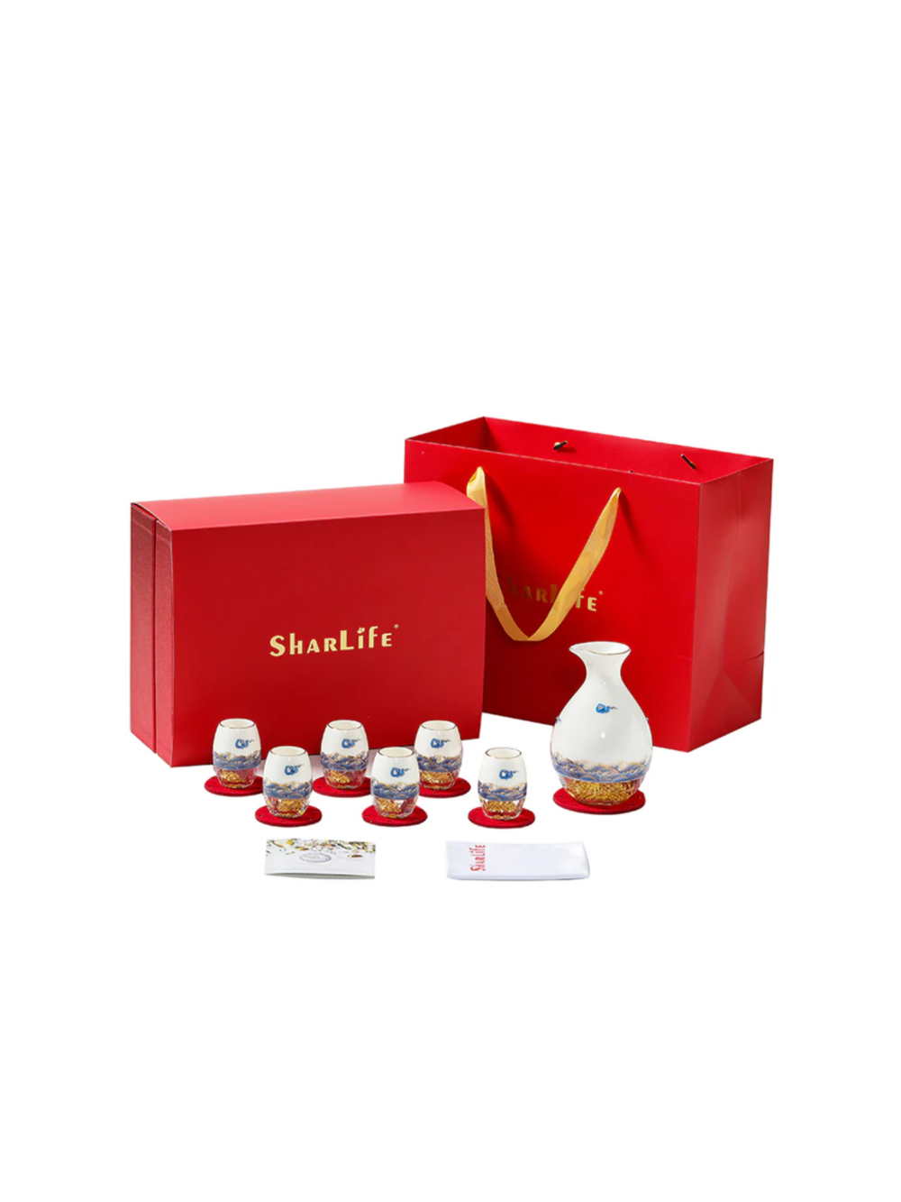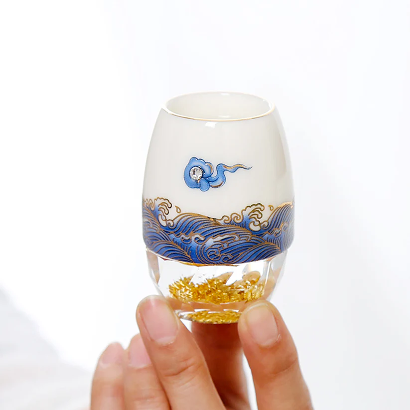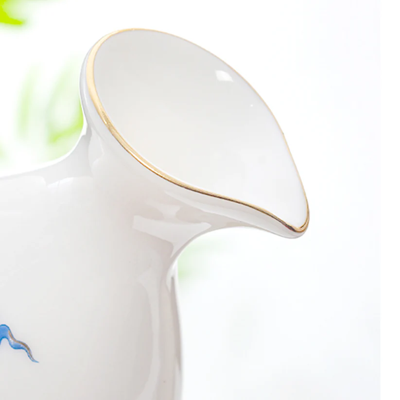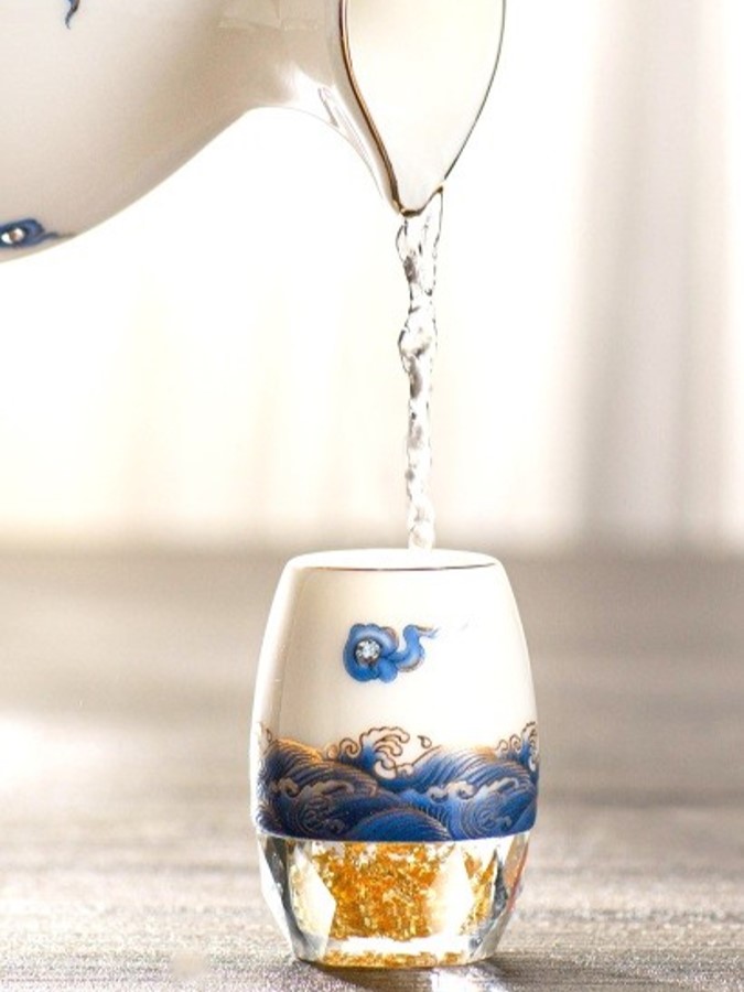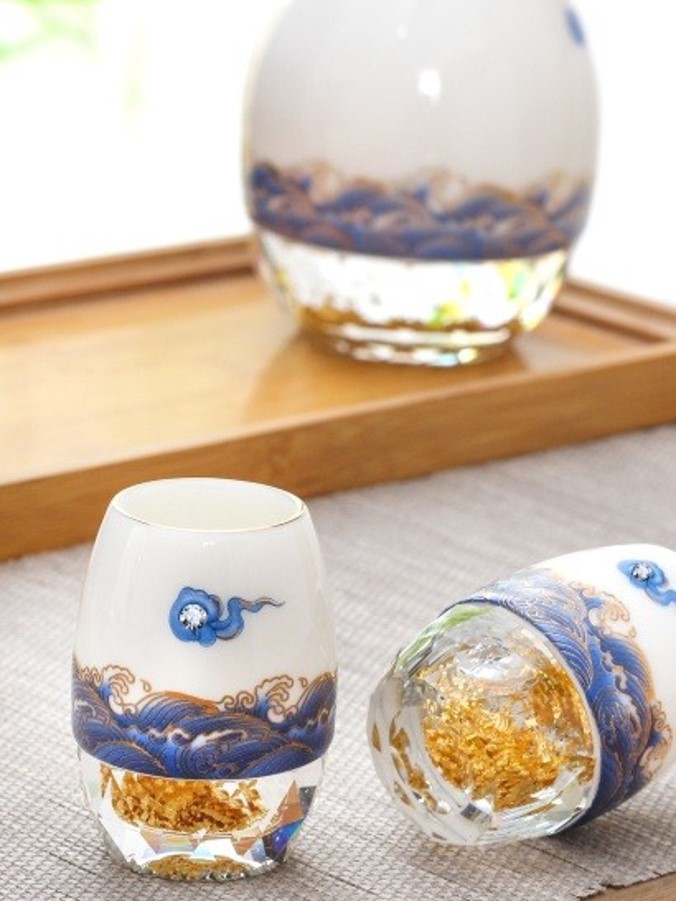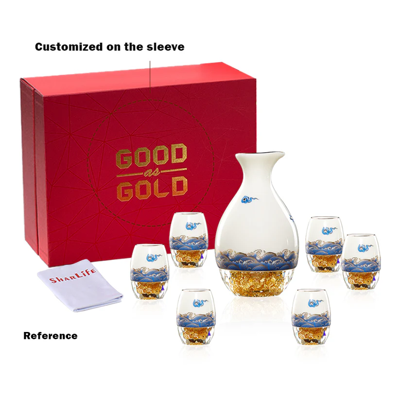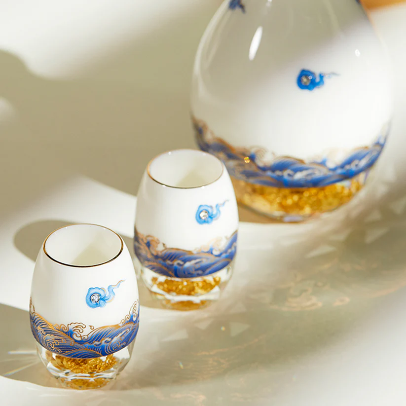 Bộ rượu sứ Thanh Vân gồm 1 bình và 6 chén, được chế tác từ sứ cao cấp và đế pha lê chứa vàng 24K. Họa tiết vân mây xanh trên bề mặt sản phẩm được làm nổi tinh xảo, không phai màu theo thời gian. Sản phẩm đi kèm hộp quà tặng sang trọng, thể hiện sự tinh tế và đẳng cấp. Ý nghĩa: Ý nghĩa thiết kế: Họa tiết vân mây xanh tượng trưng cho bầu trời trong xanh, sự bình yên và an lạc, mang đến cảm giác thoải mái và thư thái. Đế pha lê chứa vàng 24K tượng trưng cho sự giàu có và may mắn, làm tăng thêm vẻ cao quý của sản phẩm. Ý nghĩa phong thủy: Thiết kế tròn đầy và cân đối của bình rượu và chén mang lại ý nghĩa phong thủy tốt lành, giúp gia tăng tài lộc và may mắn. Chất liệu: Sứ cao cấp: Trắng mịn, bền chắc, được nung ở nhiệt độ trên 1300°C qua 13 công đoạn thủ công tinh xảo. Đế pha lê: Trong suốt, chứa vàng 24K, tạo nên sự sang trọng và độc đáo. Họa tiết vân mây: Nổi bật, không bay màu, được hoàn thiện bằng kỹ thuật vẽ tay và sử dụng vàng nhập khẩu từ Đức. Kích thước: Bình: Cao 150mm, rộng 90mm, thể tích 310ml Chén: Cao 62mm, rộng 43mm, thể tích 30ml Hướng dẫn sử dụng: Rửa sạch bằng tay với nước ấm và xà phòng nhẹ. Tránh sử dụng trong lò vi sóng, máy rửa bát, hoặc tiếp xúc trực tiếp với lửa để đảm bảo độ bền của sản phẩm. Bảo quản nơi khô ráo và tránh va đập mạnh. Sự lựa chọn hoàn hảo: Bộ rượu sứ Thanh Vân là món quà lý tưởng cho các dịp đặc biệt như lễ tân gia, kỷ niệm, tri ân, hoặc làm quà tặng doanh nghiệp. Không chỉ là dụng cụ thưởng rượu, sản phẩm còn là một tác phẩm nghệ thuật tinh xảo, góp phần tôn vinh không gian sống và khẳng định phong cách sống đẳng cấp.