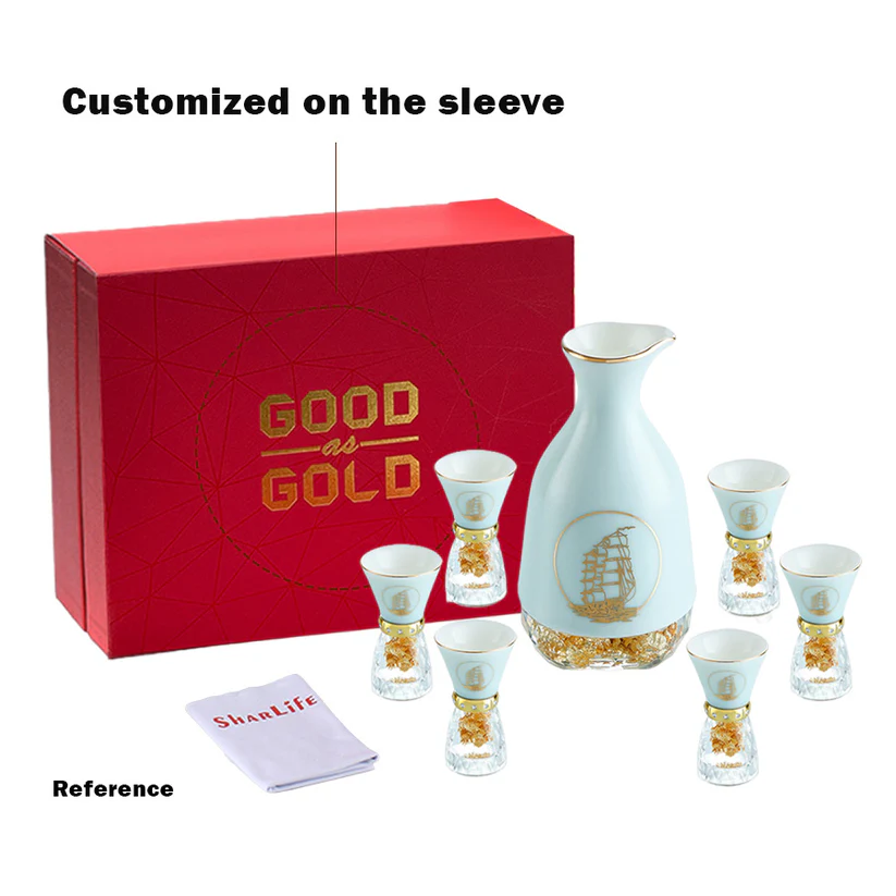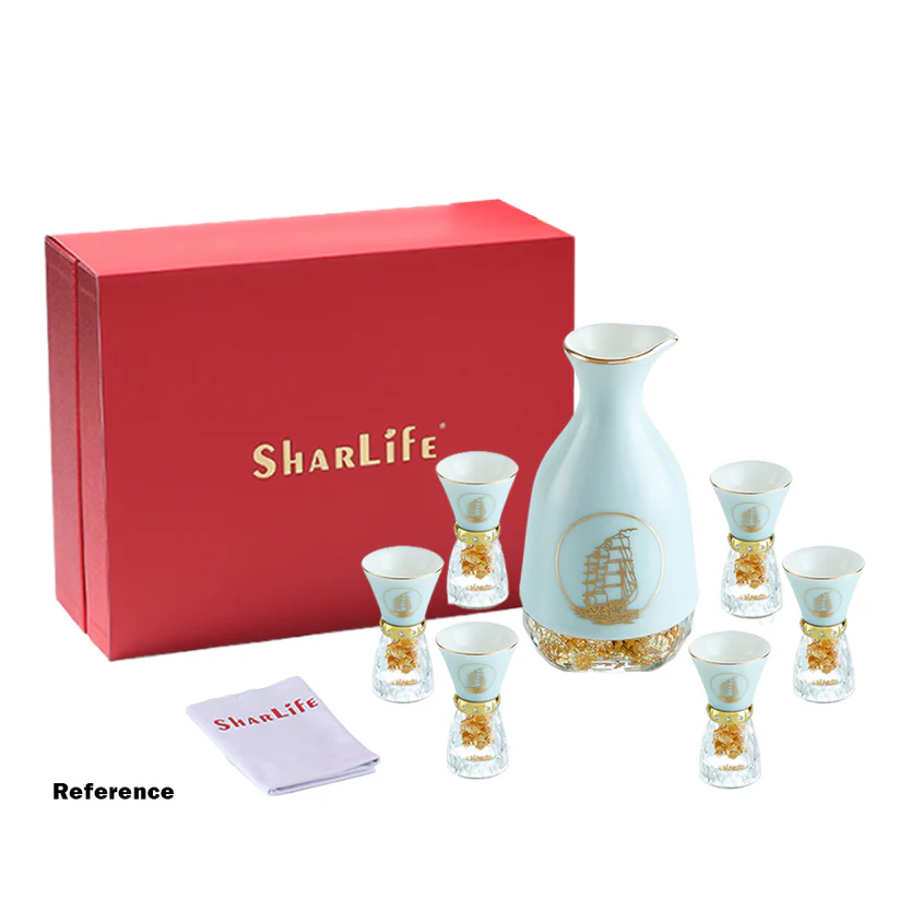 Bộ rượu Thuận Buồm Xuôi Gió gồm 1 bình và 6 chén, được thiết kế tinh xảo với đế pha lê chứa vàng 24K và viền mạ vàng, mang lại vẻ đẹp sang trọng và ấn tượng. Hình ảnh cánh buồm tượng trưng cho sự thuận lợi, mọi việc suôn sẻ và thành công trong cuộc sống. Ý nghĩa: Ý nghĩa thiết kế: Hình ảnh cánh buồm vươn ra biển khơi gợi lên sự tiến bộ, vượt qua mọi khó khăn để đạt được mục tiêu. Đế pha lê chứa vàng 24K và viền vàng tạo nên sự kết hợp giữa nét hiện đại và tinh hoa truyền thống. Ý nghĩa phong thủy: Biểu tượng "Thuận Buồm Xuôi Gió" mang ý nghĩa tốt lành, giúp gia chủ gặt hái thành công và gặp nhiều may mắn trong sự nghiệp và cuộc sống. Chất liệu: Sứ cao cấp: Trắng mịn, sáng bóng và có độ bền cao. Pha lê: Đế pha lê chứa vàng 24K tạo nên điểm nhấn sang trọng. Họa tiết: Viền vàng mạ nhập khẩu từ Đức, kết hợp với pha lê Swarovski trang trí quanh miệng chén. Kích thước: Bình: Cao 160mm, rộng 80mm, thể tích 245ml Chén: Cao 78mm, rộng 42mm, thể tích 10ml Hướng dẫn sử dụng: Rửa sạch bằng tay với nước ấm và xà phòng nhẹ. Tránh sử dụng trong lò vi sóng, máy rửa bát, hoặc tiếp xúc trực tiếp với lửa để đảm bảo độ bền. Bảo quản nơi khô ráo, tránh va đập mạnh. Sự lựa chọn hoàn hảo: Bộ rượu Thuận Buồm Xuôi Gió là món quà tuyệt vời cho các dịp lễ kỷ niệm, khai trương, hoặc làm quà biếu doanh nghiệp. Đây không chỉ là sản phẩm thưởng rượu mà còn là biểu tượng của sự thành công và thịnh vượng, phù hợp để trưng bày trong không gian sống hay làm việc, tạo nên phong cách đẳng cấp và tinh tế.
