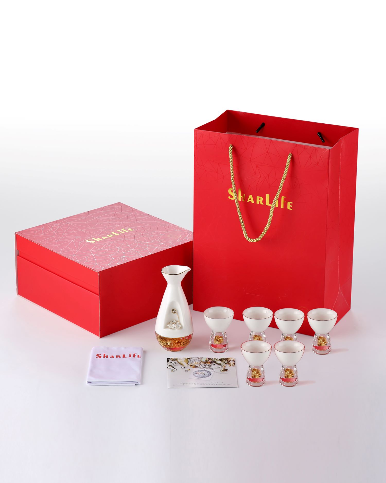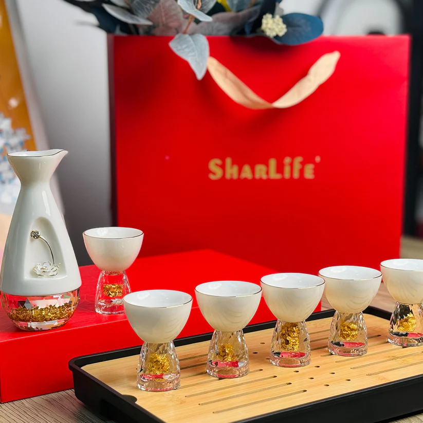 Bộ rượu sứ hoa sen Swarovski