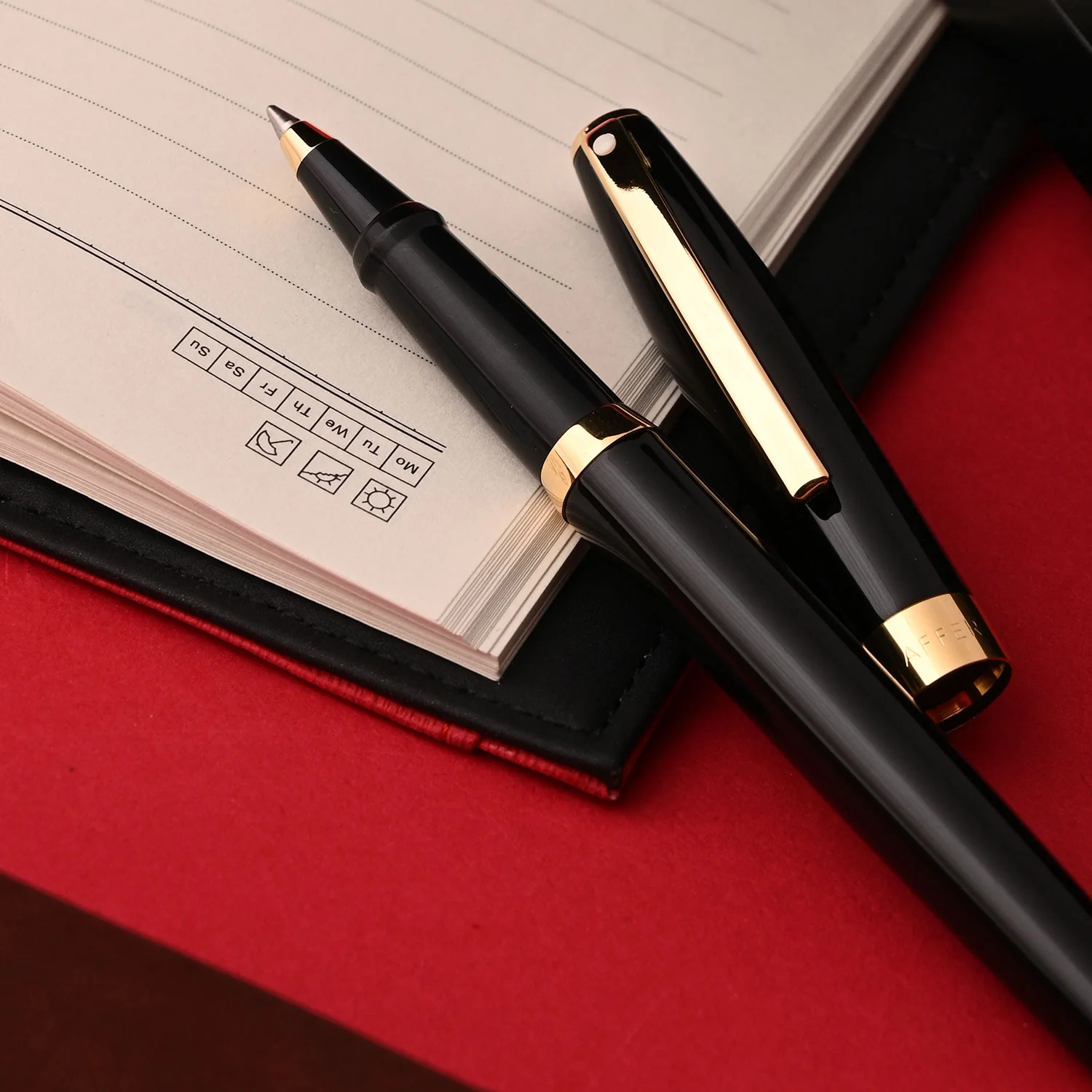 Sheaffer Sagaris Rollerball Pen - Glossy Black GT là hiện thân của sự tinh tế và đẳng cấp, lý tưởng cho những ai muốn tạo ấn tượng mạnh mẽ. Với thiết kế bóng bẩy và chất liệu cao cấp, cây bút này không chỉ là công cụ viết mà còn là biểu tượng của phong cách và sự tự tin. Về màu sắc, thiết kế Thân bút được sơn bóng màu đen, hoàn thiện như gương, mang lại vẻ ngoài quyền lực và sang trọng. Các chi tiết mạ vàng 22K sáng bóng làm tăng thêm sự xa hoa, khiến cây bút trở thành điểm nhấn hoàn hảo cho mọi dịp. Thiết kế thon gọn, thanh lịch, phù hợp với mọi phong cách cá nhân. Chất liệu Thân bút làm từ kim loại cao cấp, được phủ sơn mài đen bóng. Phần tay cầm bằng nhựa acrylic đen, mang lại cảm giác cầm chắc chắn và thoải mái khi viết. Nắp bút cơ chế Snap-cap, dễ dàng đóng mở mà vẫn bảo vệ tốt phần ruột bút. Hiệu suất và cơ chế vận hành Trang bị ruột rollerball cao cấp, dòng mực chảy mượt mà, đảm bảo mỗi nét viết đều liền mạch và rõ ràng. Cơ chế nắp đóng Snap-cap giúp bảo vệ ngòi và giữ mực luôn trong trạng thái sẵn sàng sử dụng. Kích thước Đường kính: 8mm Chiều dài: 135mm Trọng lượng: 27g, vừa tay cầm, không gây mỏi khi viết lâu. Điểm nhấn độc quyền Các chi tiết mạ vàng 22K tạo nên sự khác biệt, khẳng định đẳng cấp và sự sang trọng của thương hiệu Sheaffer. Thiết kế tay cầm êm ái, phù hợp ngay cả với những buổi viết kéo dài. Điều gì làm cho sản phẩm trở thành cây bút thích hợp làm quà tặng và sử dụng tuyệt vời hàng ngày? Sheaffer Sagaris Rollerball Pen - Glossy Black GT không chỉ là công cụ viết chất lượng cao mà còn là món quà ý nghĩa cho các dịp quan trọng. Với thiết kế lịch lãm, hiệu suất vượt trội, và bao bì sang trọng, đây là lựa chọn hoàn hảo cho các doanh nhân, nhà lãnh đạo, hay những người trân trọng giá trị của sự tinh tế.