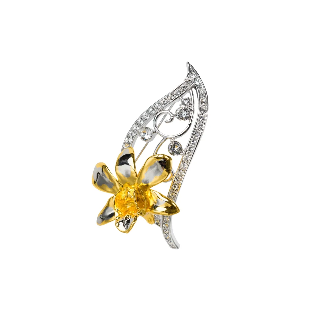 Cài áo hoa lan mạ vàng và Rhodium gắn đá Agate