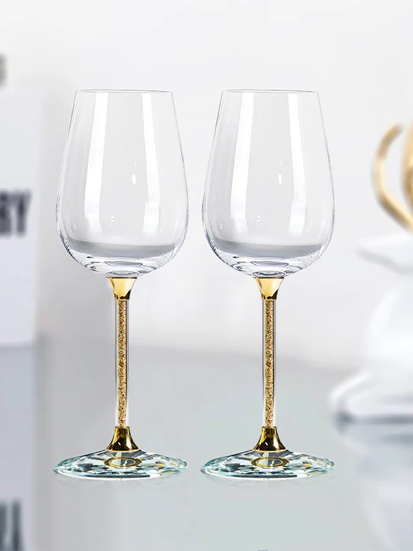 Cặp ly rượu vang 550ml thủy tinh đồng lá