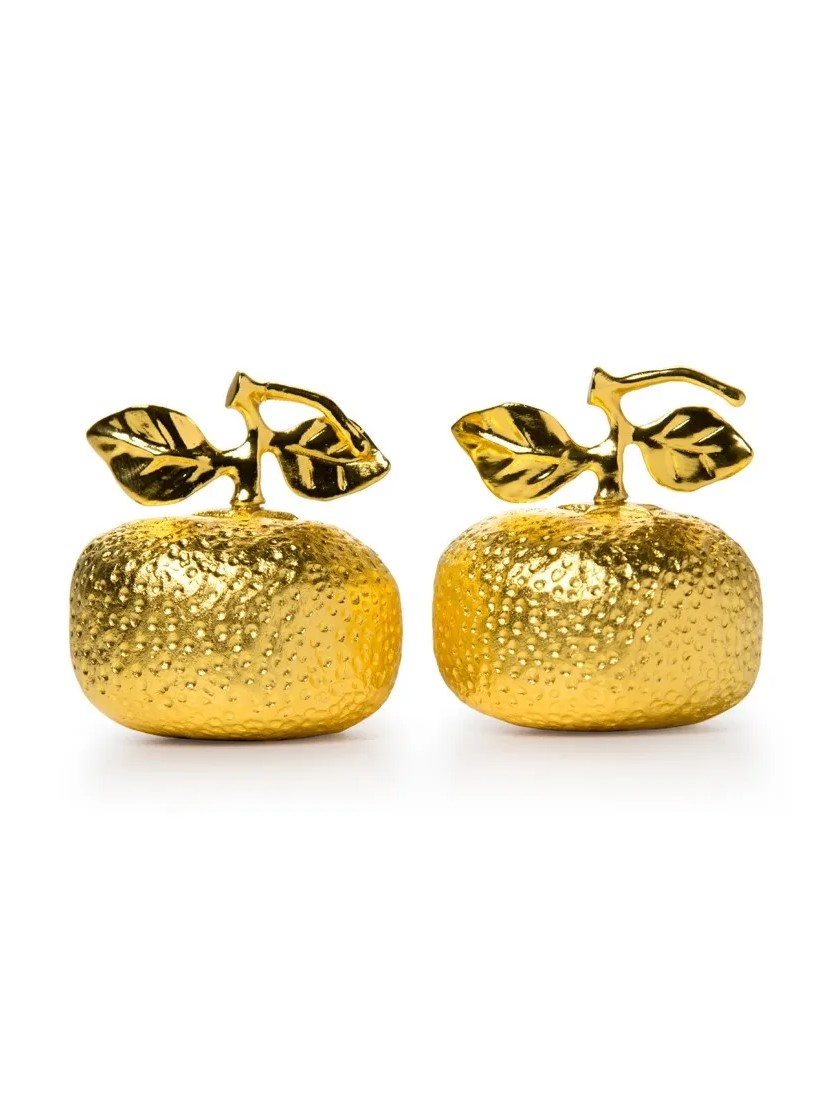 Cặp Quýt Vàng cỡ nhỏ là món quà tinh tế lấy cảm hứng từ truyền thống Tết cổ truyền Á Đông, tái hiện hình ảnh hai quả quýt tròn đầy, căng mọng với sắc vàng óng ánh. Thiết kế nhỏ gọn nhưng sang trọng, sản phẩm thể hiện sự chỉn chu trong từng chi tiết, mang đậm nét thẩm mỹ thủ công cao cấp. Ý nghĩa phong thủy: Tượng trưng cho tài lộc và sung túc: Quýt là loại quả thường được bày trong nhà vào dịp Tết, thể hiện cuộc sống đủ đầy, viên mãn. Phát âm như “may mắn”: Trong một số phương ngữ châu Á (như tiếng Quảng Đông), từ “quýt” gần giống với từ “cát” (吉), có nghĩa là may mắn, thịnh vượng. Lời chúc năm mới: Là lời chúc phát tài phát lộc, khởi đầu thuận lợi cho một năm hanh thông. Chất liệu: Sản phẩm chế tác thủ công, bề mặt mạ vàng Thụy Sĩ 24K, đảm bảo độ sáng bóng và độ bền cao. Kích thước: Cỡ nhỏ – dễ dàng trưng bày ở mọi không gian, từ bàn làm việc, bàn trà, đến tủ kính trang trí. Sự lựa chọn hoàn hảo: Quà Tết ý nghĩa: Một món quà nhỏ gọn nhưng giàu giá trị tinh thần, mang theo lời chúc an khang và tài lộc đến người nhận. Trang trí không gian: Thêm điểm nhấn sang trọng, đậm chất Tết cho góc bàn làm việc, phòng khách, hay quầy lễ tân. Quà tặng doanh nghiệp: Phù hợp tặng đối tác, khách hàng trong dịp năm mới với thông điệp đơn giản mà sâu sắc.