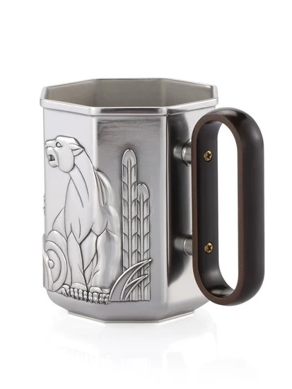Được bao bọc bởi hai chú báo, chiếc cốc hình học này tôn vinh Kỷ nguyên Máy móc với tay cầm bằng nhựa Bakelite đúc được bắt vít bằng vít đồng. Bộ sưu tập Savannah được lấy cảm hứng từ các loài chim muông thú hoang dã, với sự sáng tạo của các Nhà thiết kế Royal Selangor đã tạo nên một BST những sản phẩm rất mang tính nghệ thuật độc đáo và đẹp mắt. Kích thước: Cao 10,5cm x 12cm x Đường kính 8,5cm x 47cL Về bộ sưu tập: Chủ đề hình bát giác kết hợp phong cách thiết kế đương đại của những năm 1920, được tô điểm bằng các phù điêu điêu khắc lấy cảm hứng từ phong cách Deco về động vật hoang dã châu Phi bằng thiếc sáng bóng.