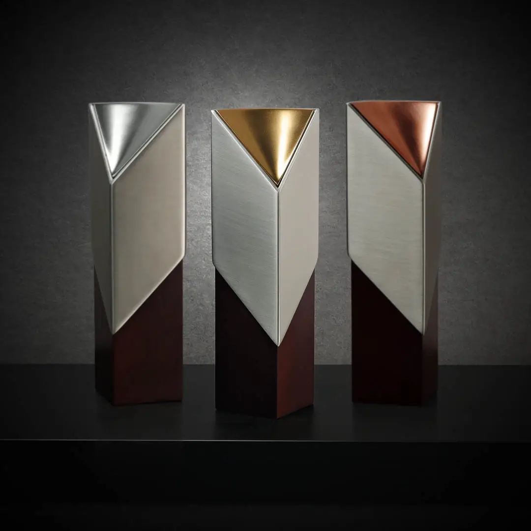 Cúp Victory là biểu tượng tinh tế của thành công và chiến thắng, được thiết kế với phong cách hiện đại và sang trọng. Đỉnh cúp được nhấn bằng một chi tiết cong đặc biệt, có thể được hoàn thiện bằng pewter sáng bóng, mạ vàng 24K hoặc đồng ấm áp. Phần thân cúp làm từ pewter satin cao cấp kết hợp cùng đế gỗ cao su phủ màu gỗ gụ, tạo nên sự hòa quyện hoàn hảo giữa sự hiện đại và truyền thống. Ý nghĩa: Thiết kế totem đơn giản nhưng mạnh mẽ thể hiện sự trường tồn, vinh danh những cột mốc và thành tựu đáng nhớ. Cúp Victory mang lại cảm giác tự hào và khích lệ tinh thần chiến thắng, là nguồn động lực cho những thành công trong tương lai. Chất liệu: Pewter cao cấp mạ bóng. Đế làm từ gỗ cao su nhuộm màu gụ. Chi tiết nhấn: Pewter sáng bóng, mạ vàng 24K hoặc đồng. Kích thước: Chiều cao: 24 cm Đường kính: 6.5 cm Hướng dẫn sử dụng: Dùng để tôn vinh cá nhân, tổ chức trong các sự kiện trao giải, cột mốc đặc biệt. Có thể khắc thông điệp cá nhân để lưu giữ những kỷ niệm đáng nhớ. Lau sạch bằng khăn mềm, tránh tiếp xúc với hóa chất mạnh để duy trì độ bền và thẩm mỹ. Sự lựa chọn hoàn hảo: Cúp Victory là lựa chọn lý tưởng để vinh danh những khoảnh khắc đáng nhớ, là món quà ý nghĩa và độc đáo trong các sự kiện đặc biệt, truyền tải niềm tự hào và động lực cho người nhận.