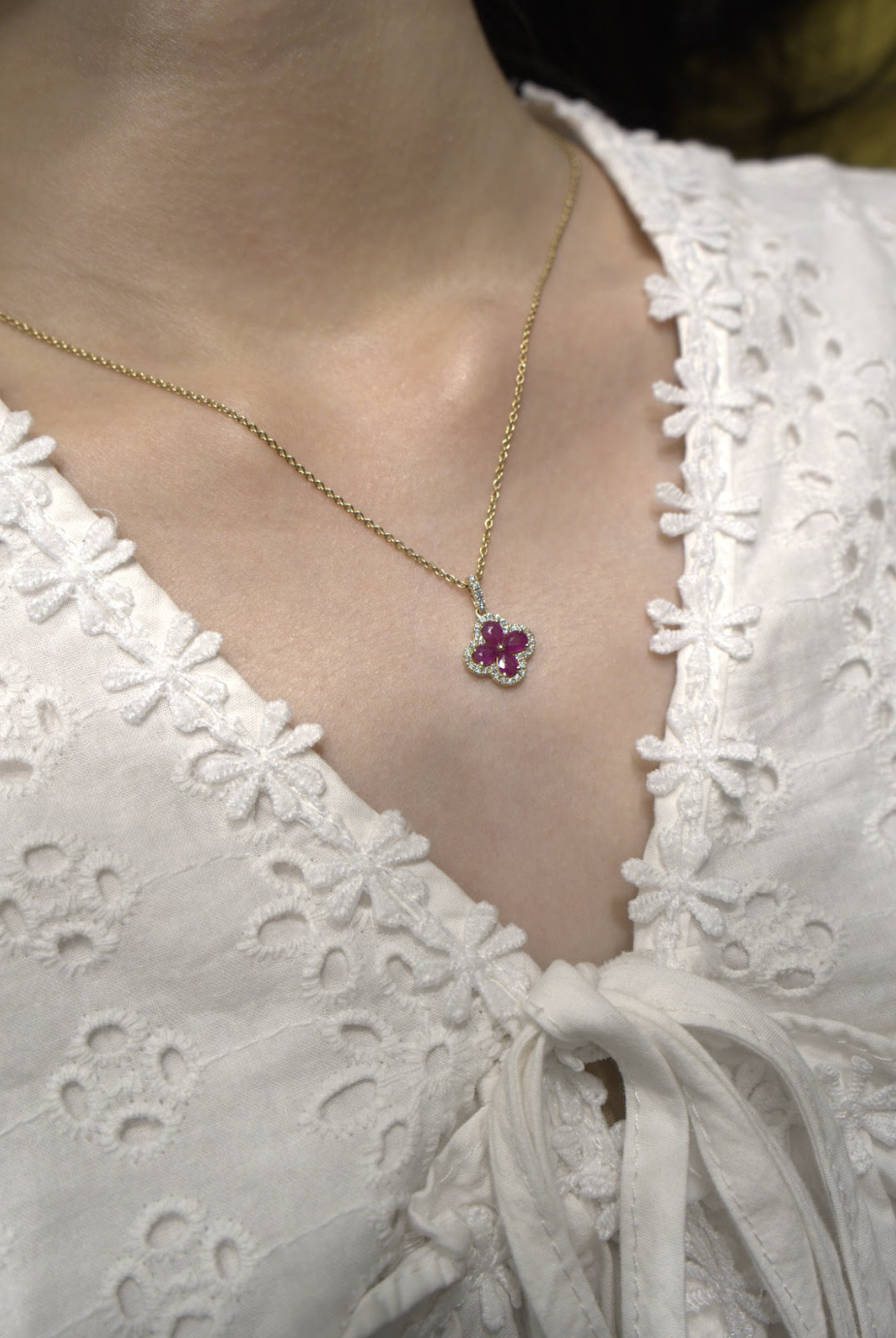 Dây chuyền vàng vàng 18K (4.118) gắn Ruby (0.688), kim cương (0.195)