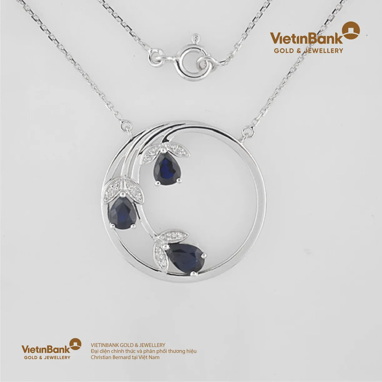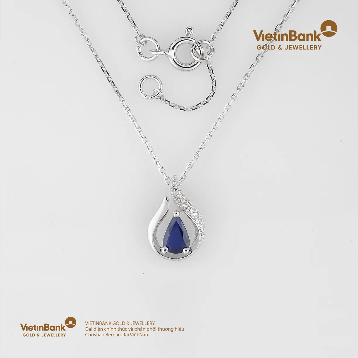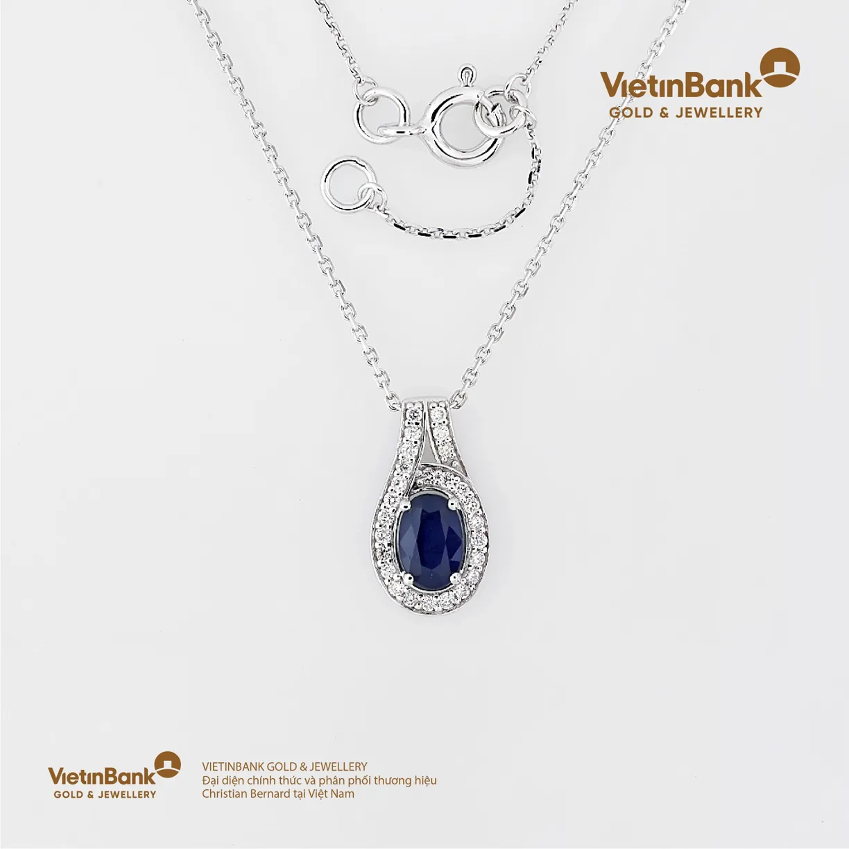 Dây chuyền Vàng Trắng 18K (4.226) gắn Saphire (1.268) KC (0.052)