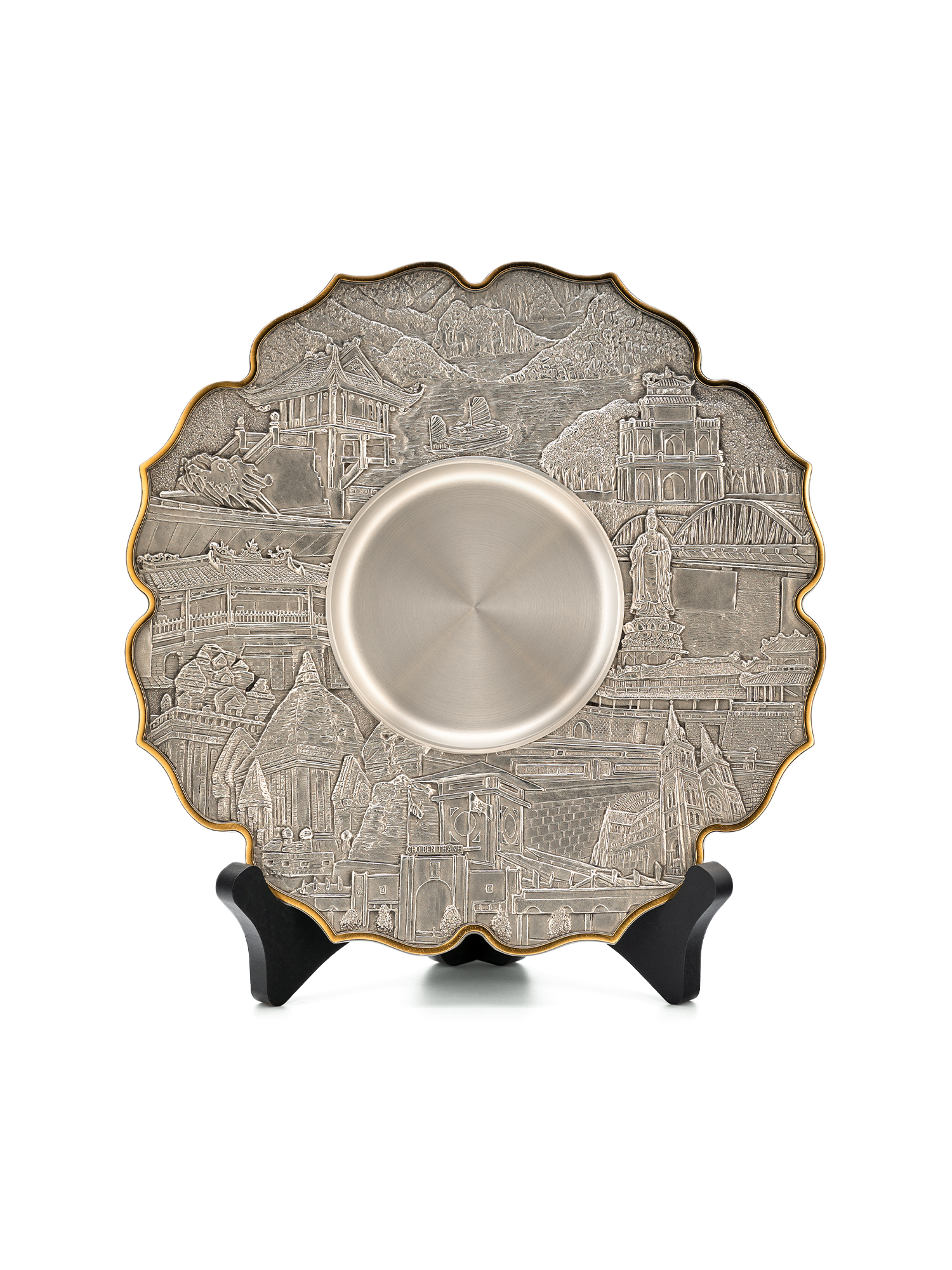 Đĩa đựng hoa quả họa tiết cổ điển là sản phẩm tinh xảo thuộc bộ sưu tập Classic Expressions từ thương hiệu Royal Selangor danh tiếng. Được chế tác từ pewter cao cấp, với phần chân đĩa được mạ vàng 24K lấp lánh, chiếc đĩa là sự kết hợp hoàn hảo giữa công năng sử dụng và giá trị nghệ thuật. Lấy cảm hứng từ nghệ thuật chạm khắc gỗ truyền thống vùng Đông Malaysia, họa tiết trên chân đĩa mang đậm nét hoài cổ, gợi nhắc đến những đường nét tinh tế của văn hóa bản địa, được thể hiện lại bằng kỹ thuật hiện đại dưới bàn tay thủ công của những nghệ nhân hàng đầu. Ý nghĩa: Tôn vinh di sản văn hóa: Họa tiết chạm khắc mô phỏng phong cách thủ công cổ điển mang giá trị văn hóa sâu sắc, tôn vinh nghệ thuật truyền thống bản địa. Biểu tượng của sự hài hòa và thịnh vượng: Trong phong thủy, đĩa đựng trái cây thường đại diện cho sự viên mãn, đủ đầy và tài lộc sum vầy, đặc biệt khi kết hợp với chi tiết mạ vàng, càng tăng thêm năng lượng tích cực. Trang trí đẳng cấp: Không chỉ là vật dụng phục vụ bày biện hoa quả, sản phẩm còn là điểm nhấn nội thất sang trọng, lý tưởng cho không gian phòng khách, bàn tiệc hay bàn trà tiếp khách. Chất liệu: Pewter cao cấp (hợp kim không chứa chì, an toàn với thực phẩm) Chân đĩa mạ vàng 24K, hoàn thiện thủ công Kích thước: 23 x 23 x 10 cm Trọng lượng: 990 g Sự lựa chọn hoàn hảo: Dành cho những ai trân trọng giá trị truyền thống kết hợp cùng thẩm mỹ hiện đại, đĩa đựng hoa quả họa tiết cổ điển là món quà tân gia, kỷ niệm, ngoại giao hay trang trí nội thất đầy ý nghĩa. Vừa đẹp mắt, vừa mang năng lượng tốt lành, sản phẩm này chắc chắn sẽ làm hài lòng những người yêu cái đẹp tinh tế và khác biệt.