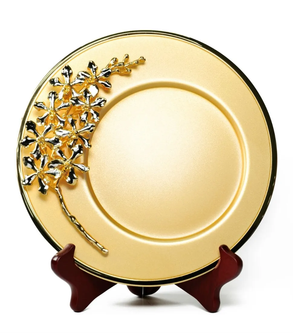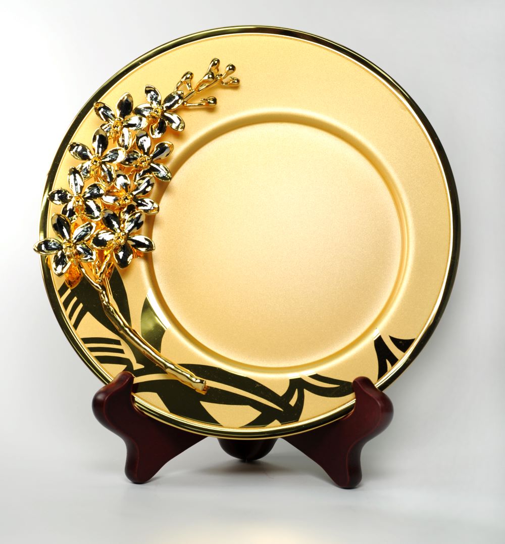 Đĩa hoa lan AS2 SP là sự kết hợp tinh tế giữa nghệ thuật chế tác thủ công và vẻ đẹp tự nhiên của loài hoa lan Vanda Limbata. Bông hoa lan thật được lựa chọn kỹ lưỡng, sau đó phủ lớp vàng 24K và palladium cao cấp, mang lại độ bền vĩnh viễn mà vẫn giữ nguyên vẻ đẹp nguyên bản. Tác phẩm được đặt trang trọng trên đĩa tròn 8 inch mạ vàng 24K, tạo nên một vật phẩm trang trí sang trọng và đẳng cấp. Ý nghĩa: Biểu tượng thanh cao: Hoa lan Vanda Limbata là biểu trưng cho sự tinh tế, thanh nhã và thành công. Trường tồn và vĩnh cửu: Lớp mạ vàng và palladium không chỉ giữ lại vẻ đẹp tự nhiên của hoa mà còn truyền tải thông điệp về sự bền vững, vượt thời gian. Phong thủy: Thu hút năng lượng tích cực, vượng khí và tài lộc vào không gian sống. Chất liệu: Hoa lan Vanda Limbata tự nhiên Mạ vàng Thụy Sĩ 24K và palladium Đĩa tròn đường kính 8 inch (≈ 20 cm), cũng được mạ vàng 24K Kích thước: Đường kính đĩa: 8 inch (≈ 20 cm) Sự lựa chọn hoàn hảo: Trang trí nội thất: Phù hợp đặt tại phòng khách, phòng làm việc hoặc khu vực sảnh lễ tân, tạo điểm nhấn sang trọng và tinh tế. Quà tặng cao cấp: Là món quà tuyệt vời cho các dịp đặc biệt như khai trương, kỷ niệm, tân gia hay tri ân đối tác – gửi gắm lời chúc thịnh vượng và thành công dài lâu. Đĩa hoa lan AS2 SP không chỉ là một vật phẩm nghệ thuật mà còn là biểu tượng của vẻ đẹp bất diệt, là lựa chọn lý tưởng cho những ai trân quý giá trị thẩm mỹ và văn hóa phương Đông.