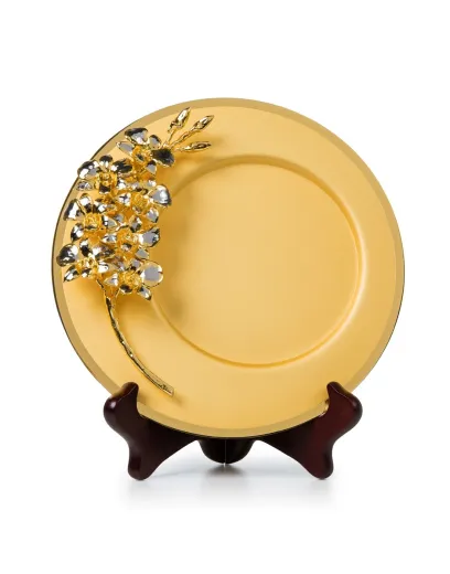 Hoa lan Vanda Limbata tự nhiên được phủ một lớp vàng 24k và palladium, có thể bảo quản vĩnh viễn gắn trên đĩa tròn 8 inch mạ vàng 24k.