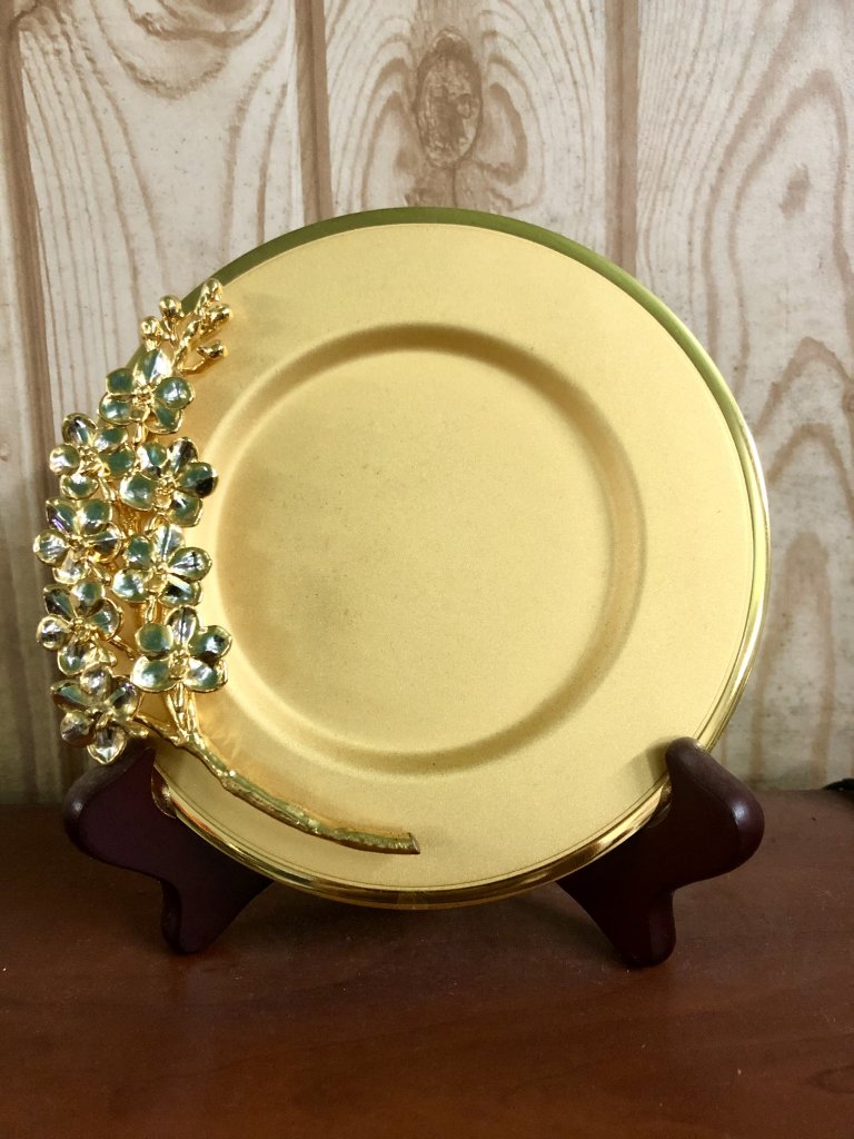 Hoa lan Phalaenopsis tự nhiên được phủ một lớp vàng 24k và palladium, có thể bảo quản vĩnh viễn gắn trên đĩa tròn 6 inch mạ vàng 24k. Kích thước đĩa: 6 inch