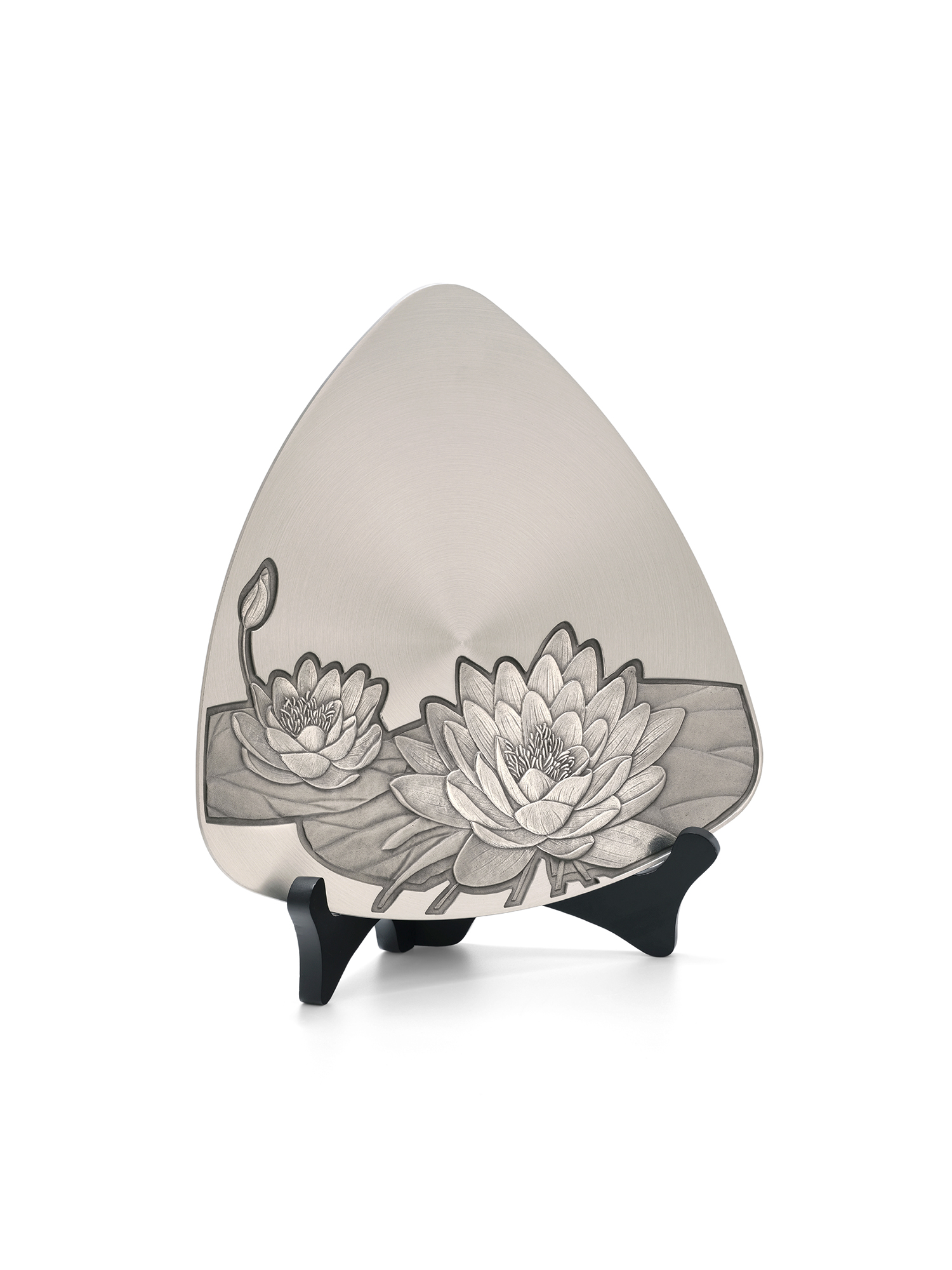 Với thiết kế độc đáo tựa như miếng gảy đàn, chiếc đĩa mang hình ảnh hoa súng được chạm khắc tinh xảo, biểu tượng của sự tinh khiết, tái sinh và lạc quan trong nhiều nền văn hóa. Đĩa trưng bày được làm từ pewter cao cấp. Kích thước: 25,5cm x 26cm. Bộ sưu tập kinh điển: Là sự kết hợp giữa giá trị vượt thời gian và phong cách, những tác phẩm này là lựa chọn hoàn hảo cho sở thích cá nhân hoặc làm quà tặng đầy ý nghĩa.
