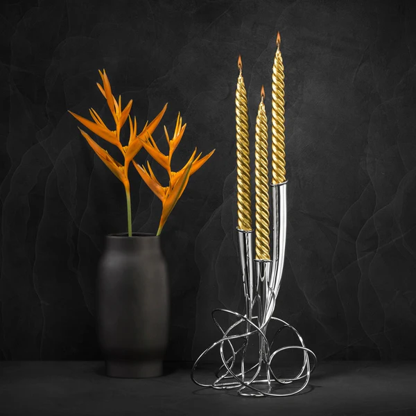 Giá cắm nến bạc Comyns - Gracilis Candelabrum là giá cắm nến giới hạn, được chế tác hoàn toàn thủ công với thiết kế đầy cảm hứng từ cây nắp ấm Gracilis – một loài thực vật thanh mảnh và quyến rũ. Ba thanh bạc nguyên chất với chiều dài khác nhau được uốn cong, tạo hình hoàn toàn bằng tay, sau đó hàn nối chính xác để tạo nên phần đế vững chãi với vẻ đẹp đan cài độc đáo. Các trụ cắm nến được bố trí nhiều tầng, nâng đỡ bởi hệ thống dây leo uốn lượn – không chỉ tạo ánh sáng ấm áp mà còn tạo nên hiệu ứng bóng đổ nghệ thuật lên không gian xung quanh. Sản phẩm có thể sử dụng linh hoạt như giá cắm nến hoặc lọ cắm hoa trang trí. Ý nghĩa Lấy cảm hứng từ vẻ đẹp thanh thoát của thiên nhiên, Gracilis Candelabrum mang đến sự giao hòa giữa nghệ thuật thủ công truyền thống và thiết kế hiện đại. Là vật phẩm tượng trưng cho sự mềm mại, tinh tế nhưng vẫn vững chãi, sản phẩm đại diện cho vẻ đẹp không phô trương nhưng đầy chiều sâu – như ánh nến lặng lẽ tỏa sáng trong đêm. Chất liệu Bạc nguyên chất, uốn tay tự do và hàn chính xác Chế tác thủ công hoàn toàn, đòi hỏi tay nghề cao và sự kiên nhẫn Thiết kế linh hoạt: vừa là giá cắm nến, vừa có thể dùng làm lọ hoa nghệ thuật Sản phẩm giới hạn: chỉ 100 chiếc trên toàn thế giới Kích thước Cao: 24 cm, Rộng: 14.5 cm Sự lựa chọn hoàn hảo Gracilis Candelabrum là điểm nhấn độc bản cho không gian sống hiện đại – từ bàn tiệc, phòng khách đến sảnh tiếp khách của doanh nghiệp. Đây là tác phẩm nghệ thuật sưu tầm dành cho những người yêu vẻ đẹp tối giản nhưng sâu sắc, đồng thời là món quà tinh tế cho các dịp trọng đại như tân gia, sinh nhật, lễ cưới hoặc sự kiện trang trọng.
