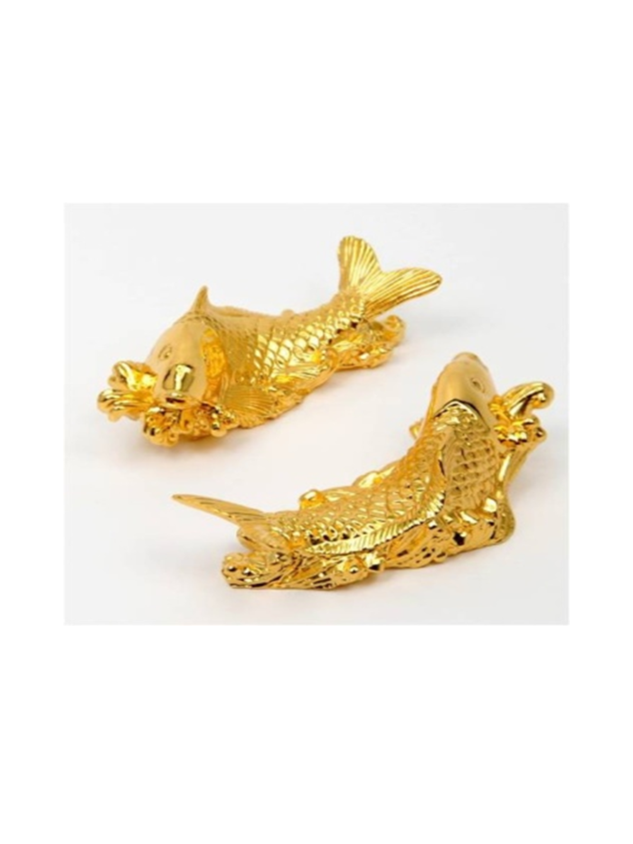 Giá đỡ đũa hình cá chép vàng là món phụ kiện bàn ăn độc đáo, mang đậm ý nghĩa phong thủy. Hình tượng cá chép được chế tác tinh xảo, phủ vàng sáng bóng, vừa trang trí vừa mang lại may mắn và lời chúc thành công cho gia chủ. Ý nghĩa phong thủy: Cá chép: Biểu tượng của sự thịnh vượng, thành đạt và may mắn. Trong văn hóa phương Đông, cá chép còn là đại diện cho sự dư dả và phúc lộc lâu dài. Phong thủy: Cá chép mang thông điệp của sự kiên trì, vượt khó và thành công, là lời chúc ý nghĩa dành cho những ai trân trọng nỗ lực và phấn đấu. Chất liệu: Kim loại cao cấp được phủ lớp vàng 24K sáng bóng, tạo nên vẻ đẹp sang trọng và bền bỉ. Hình dáng: Đôi cá chép uốn lượn mềm mại, chi tiết sắc nét, nổi bật với đường nét uyển chuyển và tinh tế. Kích thước: Thiết kế nhỏ gọn, vừa vặn làm giá đỡ cho đôi đũa, tạo điểm nhấn ấn tượng trên bàn ăn. Công dụng: Giá đỡ đũa không chỉ tiện dụng mà còn góp phần nâng cao tính thẩm mỹ cho bàn ăn. Là món quà độc đáo và ý nghĩa dành tặng cho gia đình, bạn bè, hoặc đối tác trong các dịp đặc biệt như tân gia, khai trương, hoặc lễ Tết. Lựa chọn hoàn hảo: Giá để đũa đôi cá chép vàng không chỉ là phụ kiện bàn ăn mà còn là vật phẩm phong thủy, gửi gắm lời chúc tốt đẹp về sự thịnh vượng, thành đạt và dư dả. Một món quà ý nghĩa và sang trọng cho mọi không gian sống.