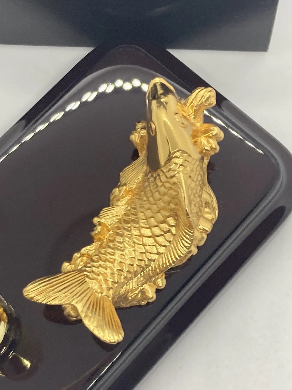 Giá đỡ bút với hình tượng cá chép vàng là phụ kiện bàn làm việc độc đáo, mang ý nghĩa phong thủy tốt lành. Hình ảnh cá chép được chế tác tinh xảo, tạo điểm nhấn sang trọng và đẳng cấp cho không gian làm việc của bạn. Ý nghĩa phong thủy: Cá chép: Là biểu tượng của sự thịnh vượng, thành đạt và tài lộc. Trong văn hóa phương Đông, cá chép còn tượng trưng cho sự kiên trì, bền bỉ, vượt qua thử thách để đạt được thành công lớn. Phong thủy: Hình tượng cá chép vàng mang lại lời chúc thành công và dư dả, rất phù hợp để đặt trên bàn làm việc hoặc tặng làm quà ý nghĩa. Chất liệu: Kim loại cao cấp được mạ vàng 24K sáng bóng, tạo nên vẻ đẹp sang trọng và bền lâu. Hình dáng: Cá chép uyển chuyển, sống động với các chi tiết tinh tế, mang đậm dấu ấn nghệ thuật. Kích thước: Dài 8.9 cm x Rộng 4.1 cm x Cao 6.2 cm, vừa vặn và thuận tiện khi sử dụng. Ứng dụng: Có thể dùng để đỡ bút, làm đồ trang trí bàn làm việc, hoặc làm quà tặng cao cấp. Lựa chọn lý tưởng: Giá đỡ bút cá chép G2 không chỉ là phụ kiện tiện ích mà còn là vật phẩm phong thủy, mang lại tài lộc và thành công cho người sở hữu. Đây là món quà hoàn hảo dành tặng cho doanh nhân, bạn bè, hoặc người thân trong các dịp đặc biệt như tân gia, khai trương, hoặc lễ Tết.