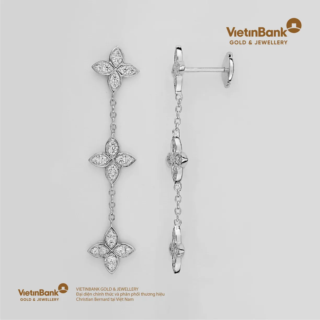 Hoa tai vàng trắng 18K (2.985) gắn Kim Cương (0.624)