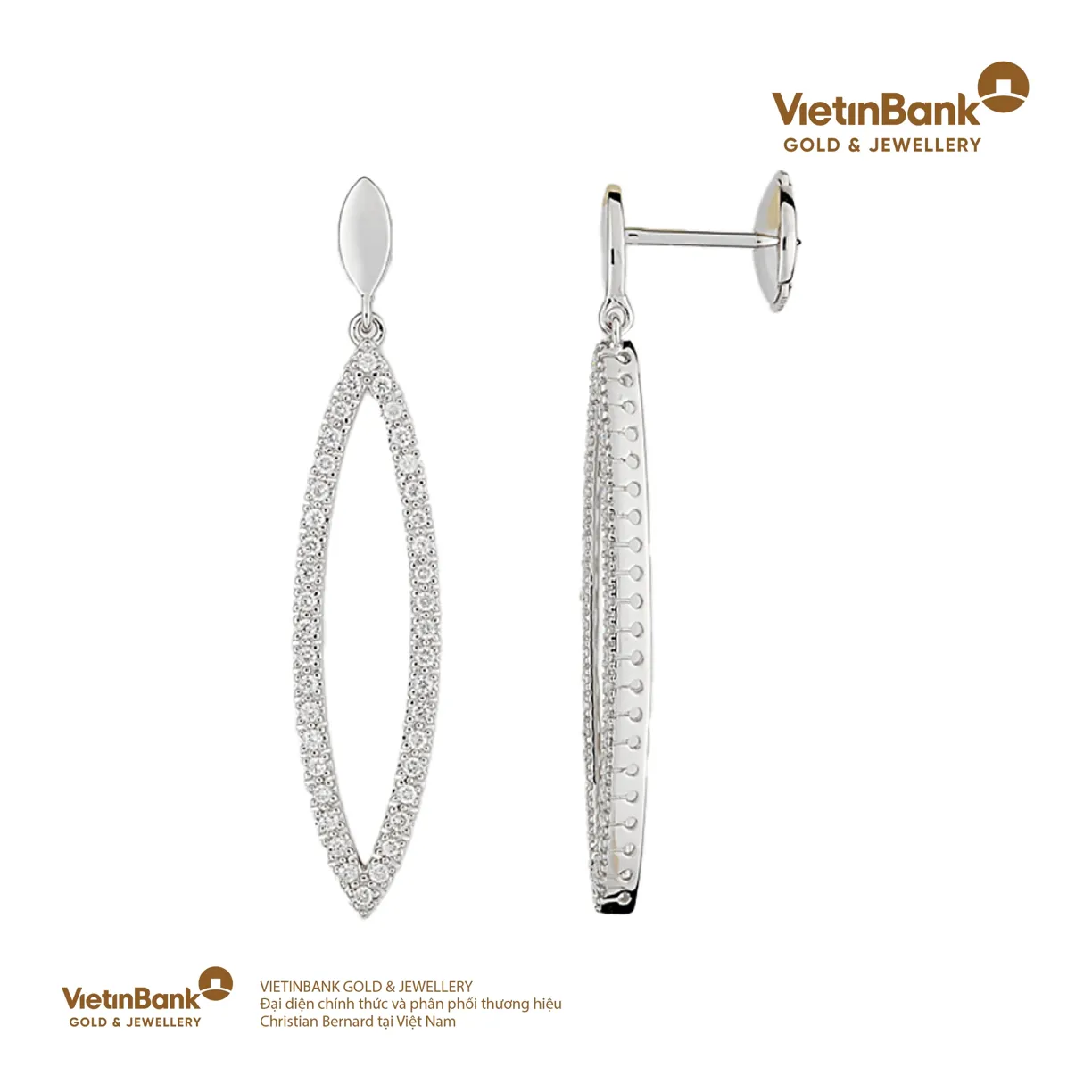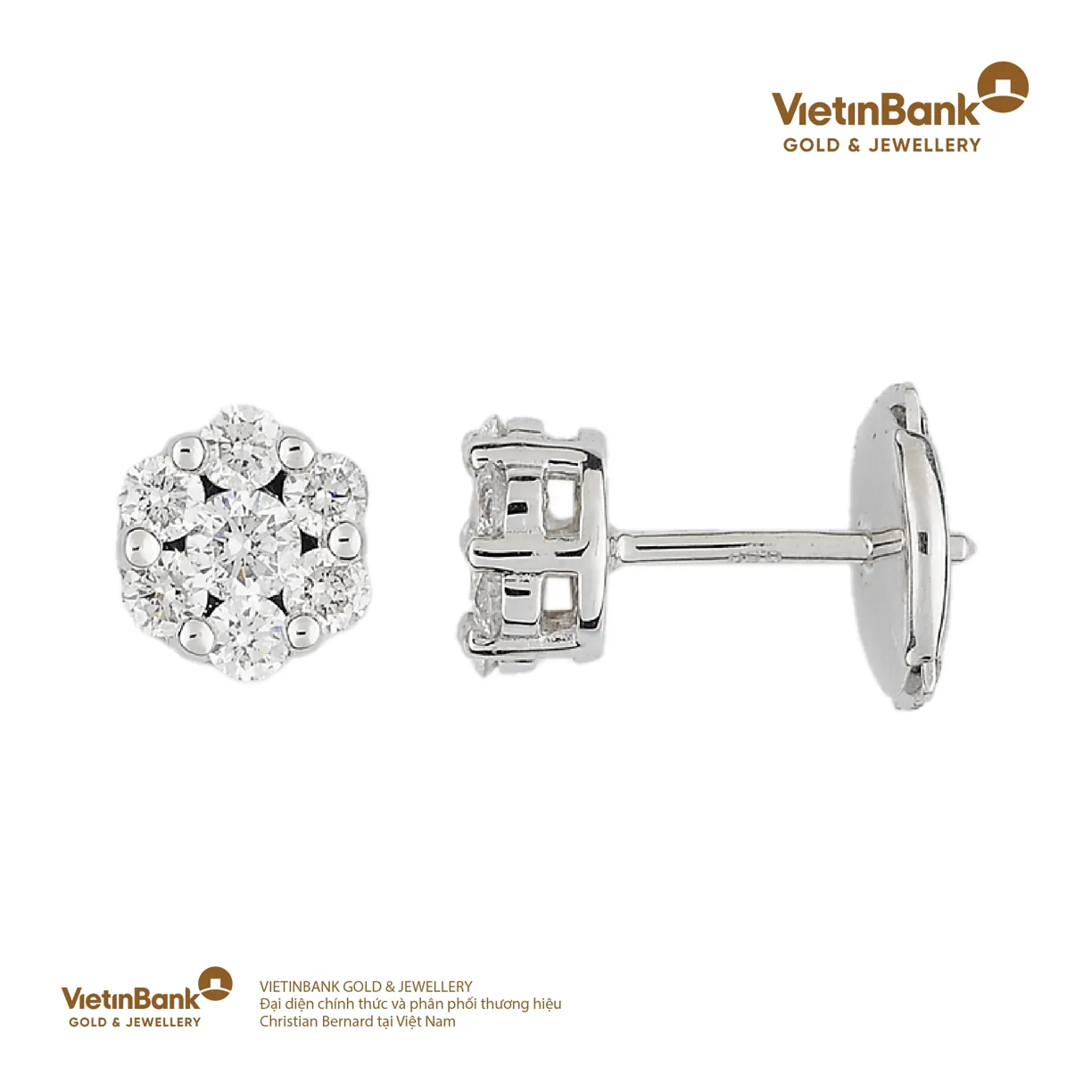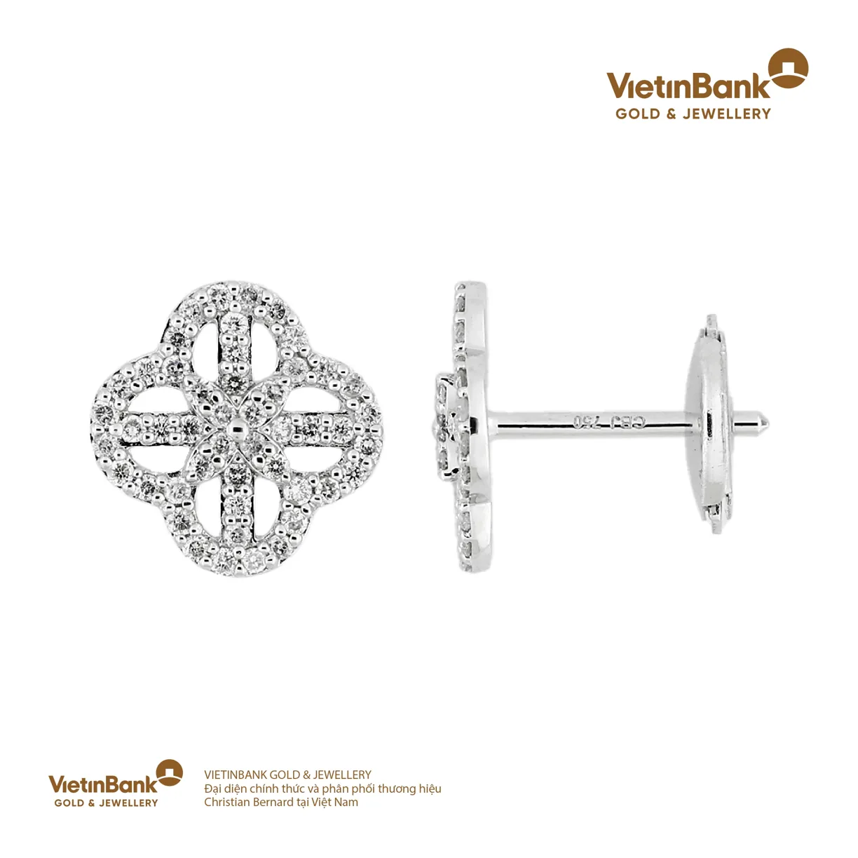 Hoa tai vàng trắng 18K (3.75) gắn Kim cương (0.4)