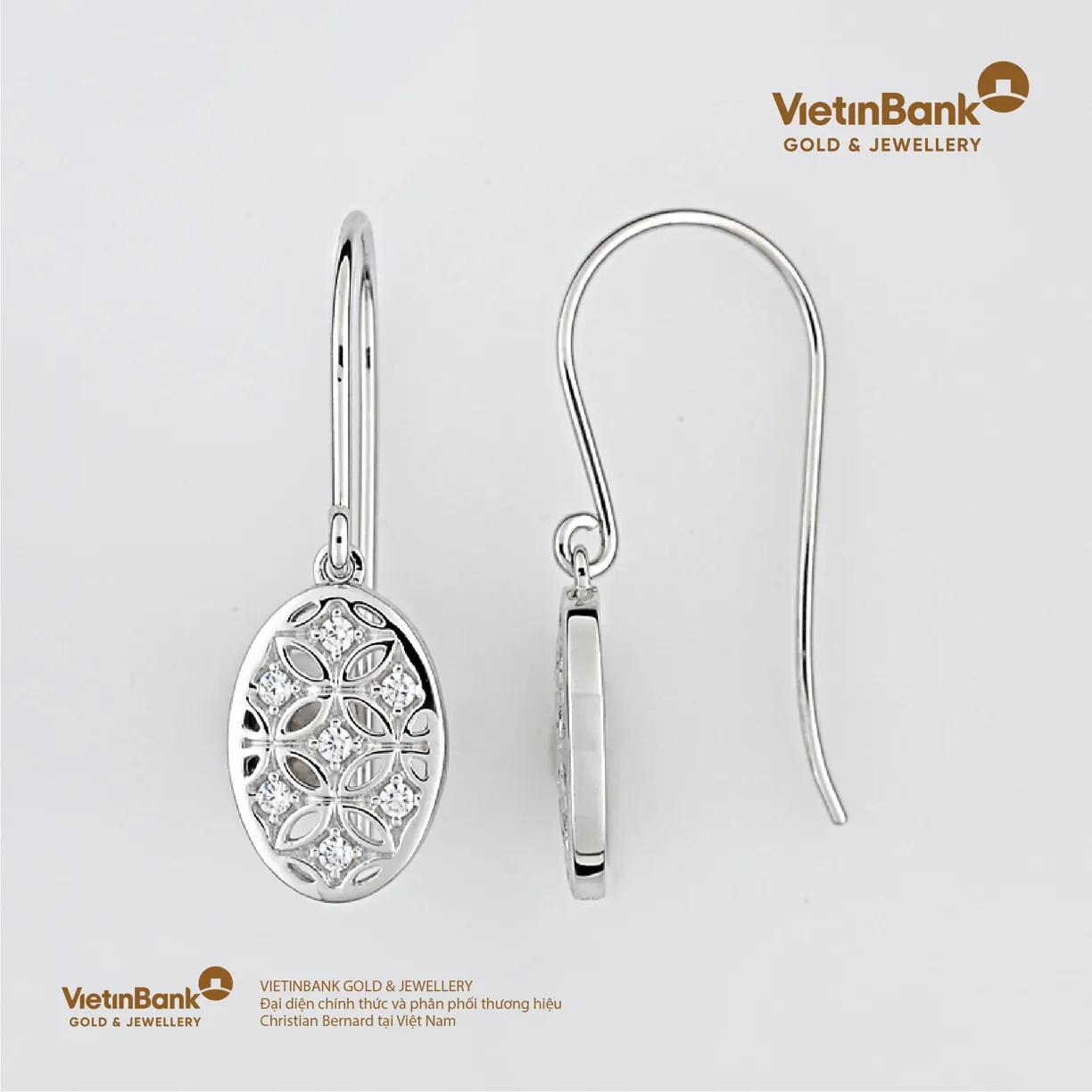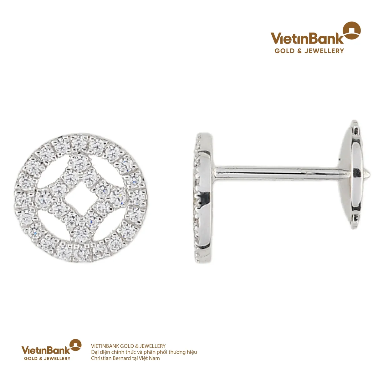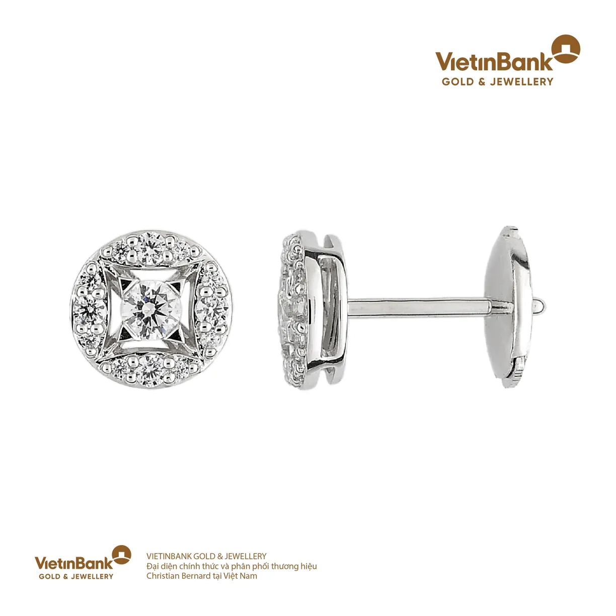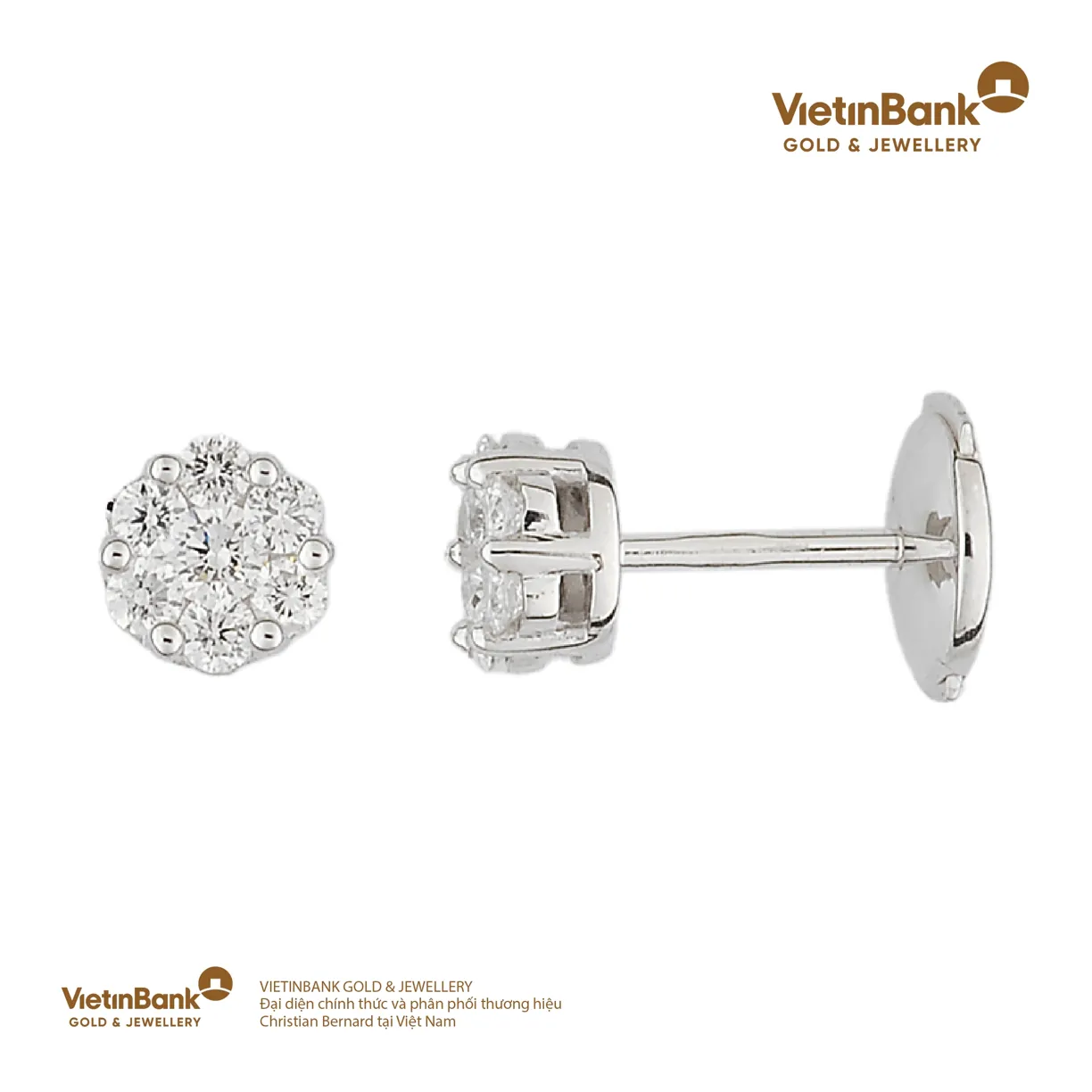 Hoa tai vàng trắng 18K (3.75) gắn Kim cương (0.4)