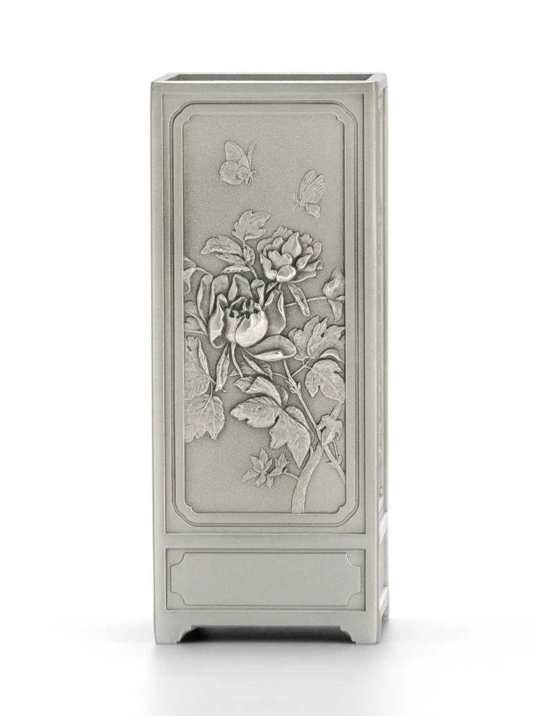 Hộp đựng bút bốn mùa nằm trong BST Bốn mùa với hình ảnh bốn loài cây: Mẫu đơn - Sen - Trúc - Mai, tượng trưng cho bốn mùa Xuân - Hạ - Thu - Đông. Sản phẩm làm từ chất liệu pewter cao cấp, thích hợp để làm quà hoặc trưng bày trên bàn làm việc Hoàn hảo để sắp xếp các dụng cụ viết trên bàn làm việc, hộp đựng này cũng là nơi trang nhã để đựng đồ trang điểm. Kích thước: Cao 12,5cm x 5cm x 5cm Có không gian để cá nhân hóa. Về bộ sưu tập Bộ sưu tập Four Seasons giới thiệu bộ tứ hoa mai, mẫu đơn, sen và cúc, những biểu tượng hoa truyền thống của các mùa trong nghệ thuật và văn hóa Trung Hoa, được điêu khắc phong phú theo phong cách cổ điển.