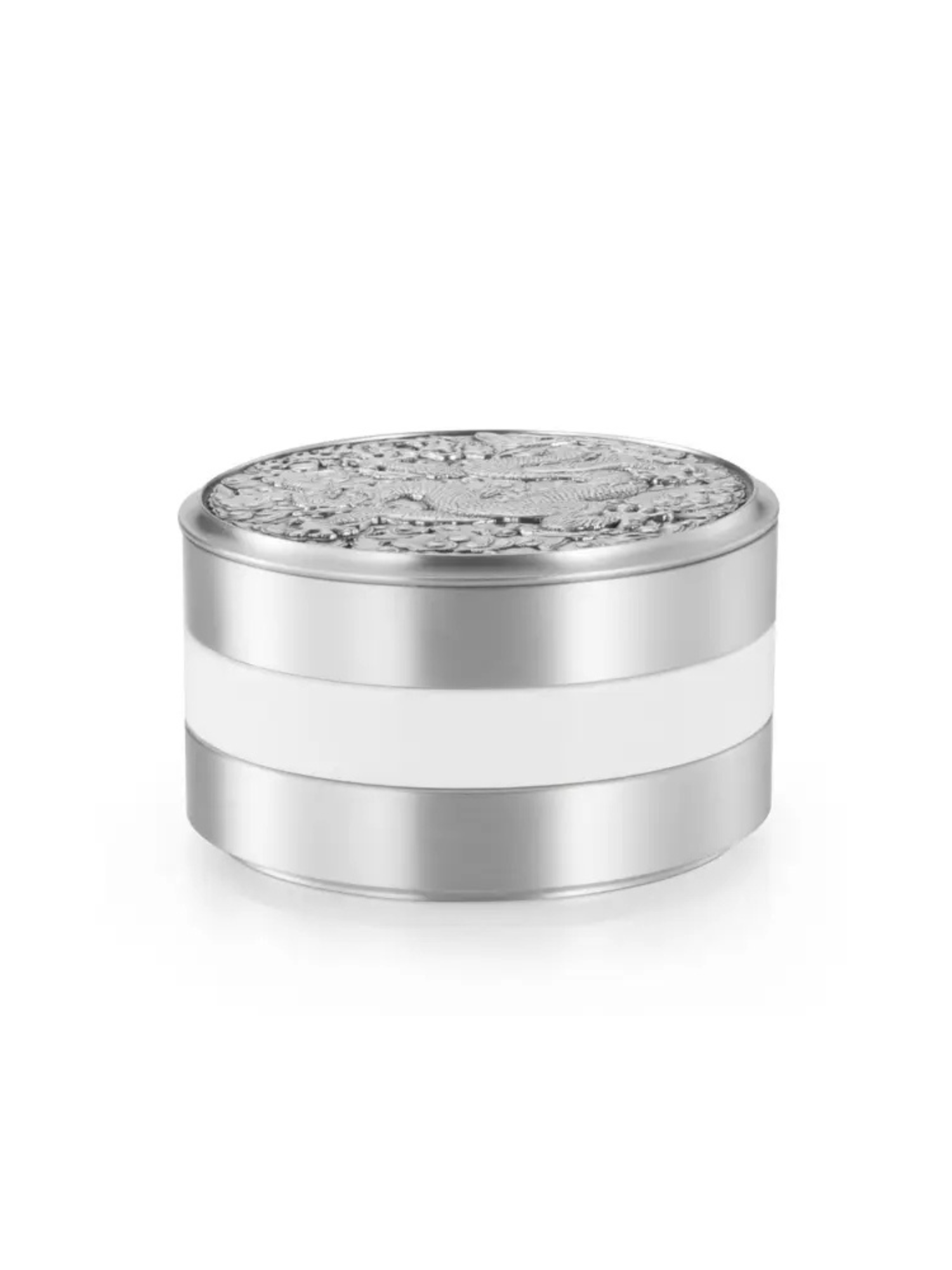 Là kết quả của sự hợp tác giữa Royal Selangor và Bảo tàng Cung điện Quốc gia Đài Loan, hộp đựng đa tầng Imperial III tôn vinh tinh thần nghệ thuật và văn hóa Trung Hoa thế kỷ 15 qua thiết kế hiện đại mà đậm chất lịch sử. Lấy cảm hứng từ hộp sơn mài khắc rồng đời Minh, nắp hộp nổi bật với hình tượng rồng uốn lượn giữa mây trời – một biểu tượng cao quý của vương quyền, quyền năng và sự thịnh vượng. Ý nghĩa Ý nghĩa thiết kế: Hình ảnh rồng trên nắp hộp tái hiện nghệ thuật chạm khắc thời Xuande (1426–1435), mang đậm tinh thần tôn quý và khí phách Á Đông. Ý nghĩa phong thủy: Rồng tượng trưng cho quyền uy, trí tuệ và may mắn. Sự hiện diện của rồng trên hộp đựng mang lại năng lượng tích cực và tài khí cho không gian sống hay làm việc. Ý nghĩa ứng dụng: Thiết kế ba tầng với khả năng tách rời linh hoạt biến sản phẩm thành khay đựng trang sức, đế lót chai rượu, đĩa bánh nhỏ, vật dụng bàn làm việc – vừa tiện lợi, vừa sang trọng. Chất liệu 2 khay được chế tác từ thiếc mờ cao cấp (satin pewter) của Royal Selangor – bền đẹp và không gỉ. 1 khay bằng gốm sứ trắng (bone china) tinh tế. Nắp hộp điêu khắc họa tiết rồng tinh xảo – điểm nhấn nghệ thuật độc bản. Kích thước Cao: 7 cm Đường kính: 12 cm Điểm nhấn độc quyền Thiết kế bởi Freeman Lau - nhà thiết kế nổi tiếng đến từ Hồng Kông, người nhận Huân chương Sao Đồng Bauhinia vì những đóng góp cho ngành thiết kế quốc gia. Mỗi sản phẩm thuộc bộ sưu tập đều mang biểu trưng chính thức của National Palace Museum – bảo chứng cho giá trị lịch sử và nghệ thuật. Sự lựa chọn hoàn hảo Hộp đựng đa tầng Imperial III không chỉ là vật dụng tiện ích mà còn là một tác phẩm nghệ thuật mang hơi thở của văn hóa Á Đông. Phù hợp để trưng bày, làm quà tặng cao cấp, hay điểm nhấn đắt giá trong không gian sống sang trọng, tinh tế.