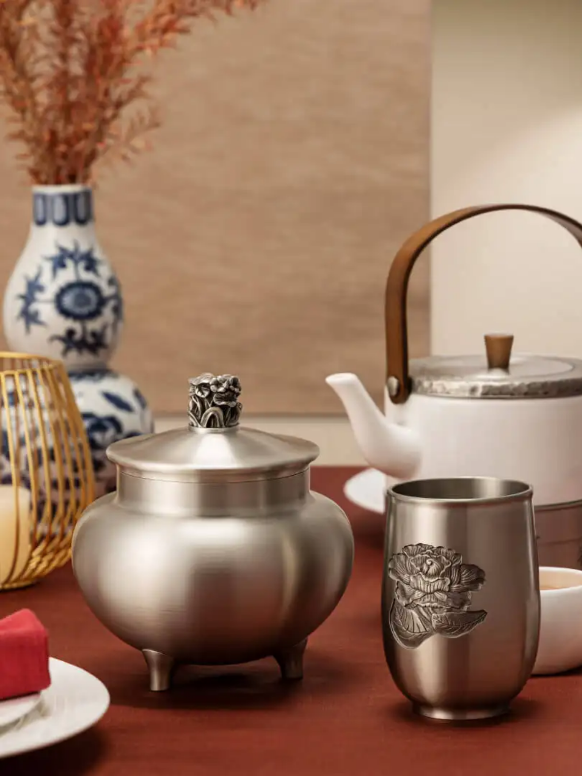 Hộp đựng trà Li là sự tái hiện đầy cảm hứng từ lư hương men ngọc Long Tuyền nổi tiếng thế kỷ 12–13, thuộc triều đại Nam Tống đến Nguyên. Thân hộp trà được thiết kế phình nhẹ như hình lư truyền thống, kết hợp cùng nắp chóp gợi mái đình xưa và nút cầm hình hoa sen chạm khắc tinh xảo – một tổng thể gợi cảm giác vương giả và thanh tịnh. Với hai nắp đẩy khí khít kín, sản phẩm giúp giữ trọn hương vị trà theo thời gian, đồng thời thể hiện gu thưởng trà đầy mỹ học và chiều sâu văn hóa. Ý nghĩa: Ý nghĩa thiết kế: Phom dáng lư cổ và mái đình phản chiếu kiến trúc Á Đông cổ kính, thể hiện sự tôn nghiêm, bền vững và tinh tế. Ý nghĩa biểu tượng: Hoa sen trên đỉnh nắp đại diện cho sự thanh cao, thuần khiết – như chính phẩm trà được gìn giữ bên trong. Ý nghĩa lịch sử: Lấy cảm hứng từ gốm Long Tuyền – loại gốm men ngọc đỉnh cao thời Tống – sản phẩm tôn vinh nghệ thuật và kỹ thuật truyền thống trong một diện mạo đương đại. Chất liệu: Làm từ pewter cao cấp không chứa chì, an toàn tuyệt đối cho người sử dụng. Hoàn thiện mờ (satin finish), tạo cảm giác sang trọng, nhã nhặn. Kích thước: Chiều cao: 14.5cm Đường kính: 14cm Hướng dẫn sử dụng: Dùng để bảo quản trà khô, cà phê hạt hoặc nguyên liệu khô khác. Vệ sinh bằng khăn mềm, tránh chà rửa mạnh hay tiếp xúc với axit. Để nơi khô thoáng, tránh ánh nắng trực tiếp. Sự lựa chọn hoàn hảo: Hộp đựng trà Li không chỉ là vật dụng bảo quản trà, mà còn là tác phẩm nghệ thuật lưu giữ văn hóa cung đình. Sản phẩm mang đến không gian thưởng trà thiền tịnh và sang trọng, đồng thời là món quà cao cấp cho các dịp tân gia, tri ân, hội nghị hay quà biếu lãnh đạo. Đây là lựa chọn lý tưởng cho những ai trân trọng cả trà ngon lẫn văn hóa thưởng trà tinh tế.