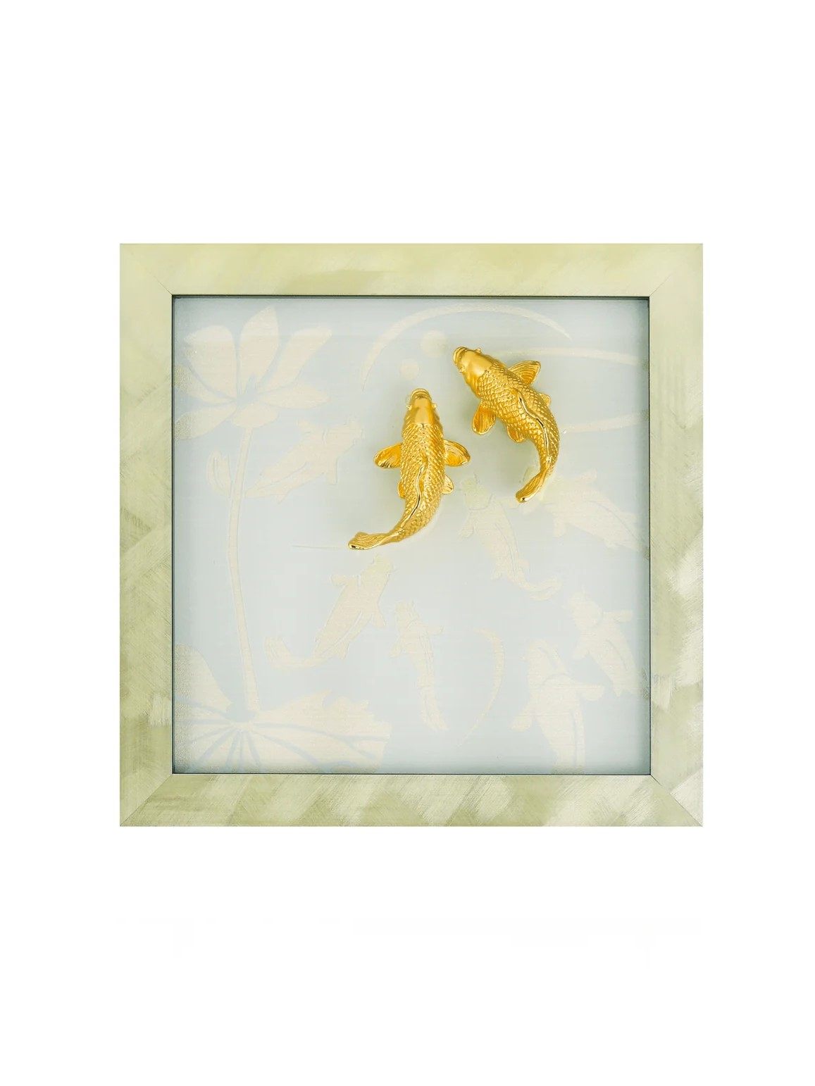 Ba chú cá chép mạ vàng 24k gắn trên nền kính cùng với hoa văn 6 chú cá khác tạo thành bức tranh Cửu ngư gồm 9 chú cá vàng tượng trưng cho thịnh vượng, thành đạt, sắc đẹp, sức khỏe, trí tuệ, sức mạnh, tuổi thọ, vững chắc và lòng nhân ái. Khung tranh Cửu Ngư là sự kết hợp độc đáo giữa nghệ thuật chạm khắc và ý nghĩa phong thủy sâu sắc. Thiết kế: • Ba chú cá chép mạ vàng 24K nổi bật, được gắn trên nền kính trong suốt, tạo hiệu ứng 3D tinh tế. • Hoa văn các chú cá được chạm khắc tinh xảo, kết hợp hài hòa để hoàn thiện bức tranh. • Tổng thể thiết kế mang phong cách hiện đại, sang trọng, phù hợp trưng bày ở phòng khách, phòng làm việc hoặc làm quà tặng. Ý nghĩa: Bức tranh Cửu Ngư tượng trưng cho Thịnh vượng, Thành đạt, Sắc đẹp, Sức khỏe, Trí tuệ, Sức mạnh, Tuổi thọ, Vững chắc, Lòng nhân ái Cá chép là biểu tượng của sự kiên trì, vượt khó và thành công, kết hợp cùng con số 9 mang ý nghĩa tròn đầy, viên mãn trong văn hóa Á Đông. Chất liệu: • Cá chép: Pewter mạ vàng 24K. • Khung kính: Chất liệu cao cấp, bền đẹp. Kích thước: Dài: 24.2 cm, Rộng: 5 cm, Cao: 31.5 cm
