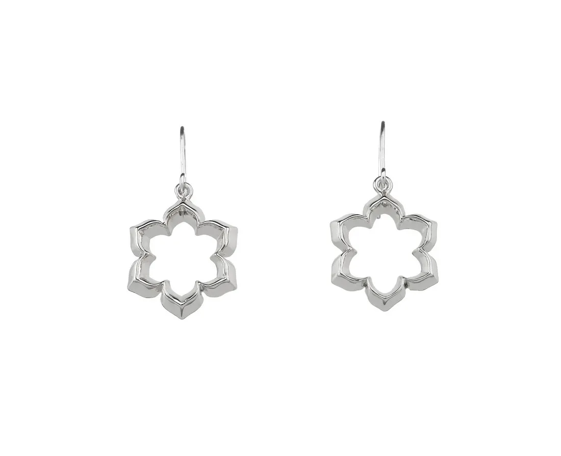 Khuyên tai hoa tiet Rangoli 6 cánh mạ Rhodium