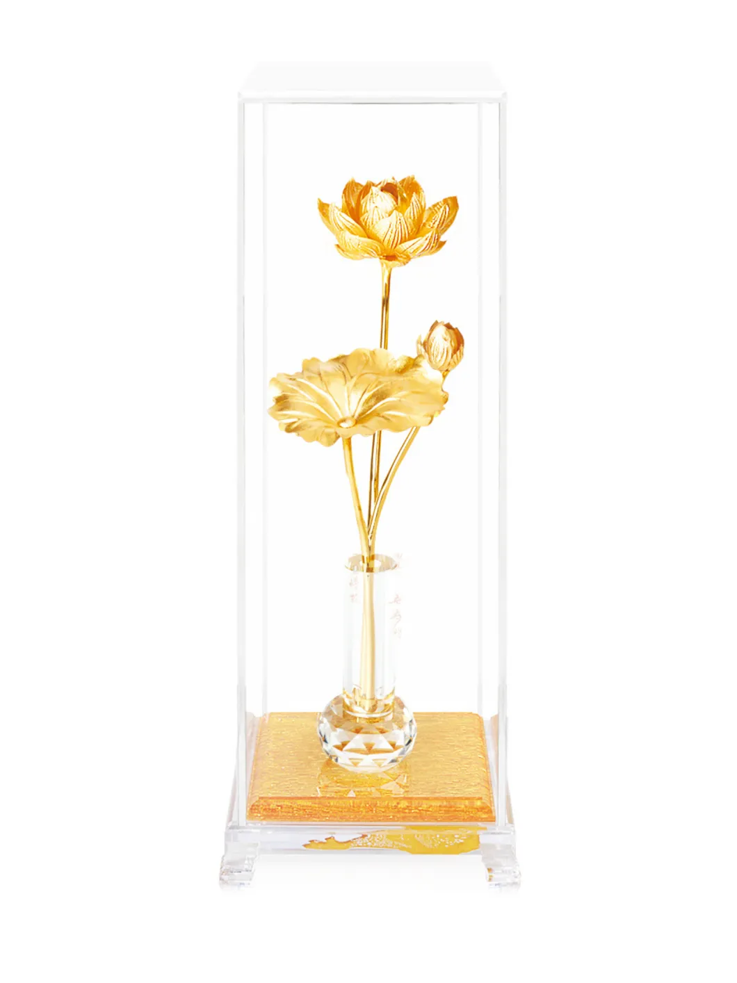 Hoa sen là biểu tượng của sự hoàn hảo, thuần khiết, tượng trưng cho bản chất nguyên thủy của trái tim Chất liệu: vàng lá. Bảo quản nơi khô ráo Kích thước :13*15.5*39cm