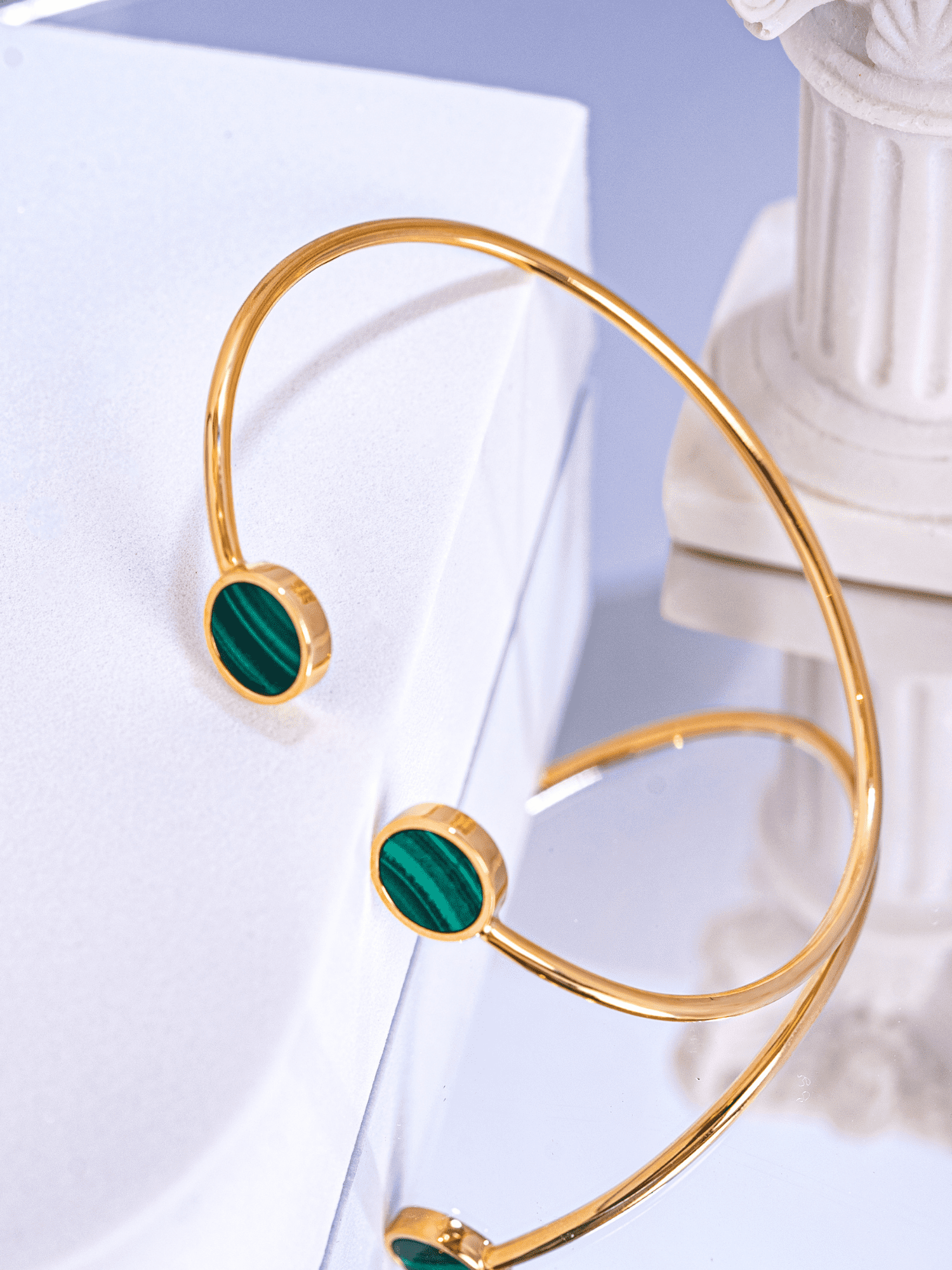 Lắc cứng Aceline vàng 18K gắn đá Khổng Tước