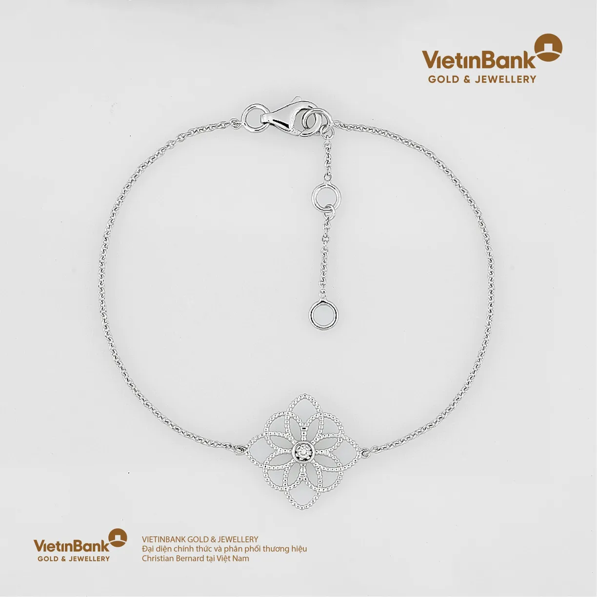 Lắc vàng trắng 18K (2.509) gắn Kim Cương (0.306)