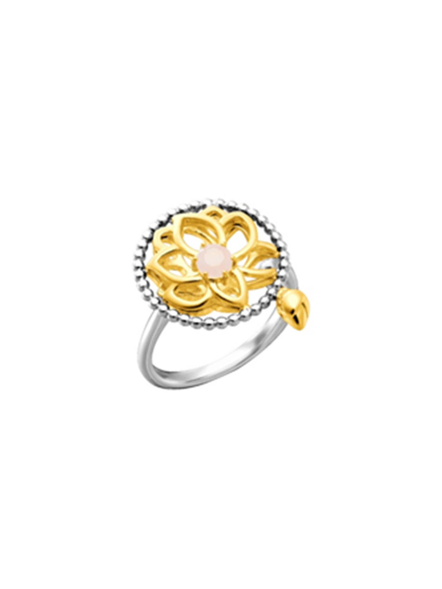 Nhẫn hoa sen gắn đá Quartz hồng