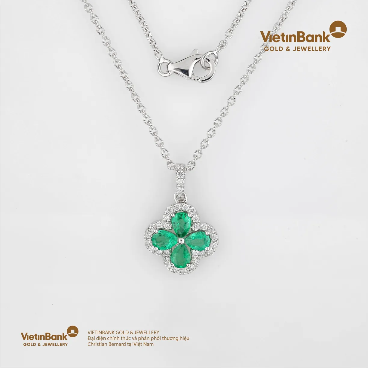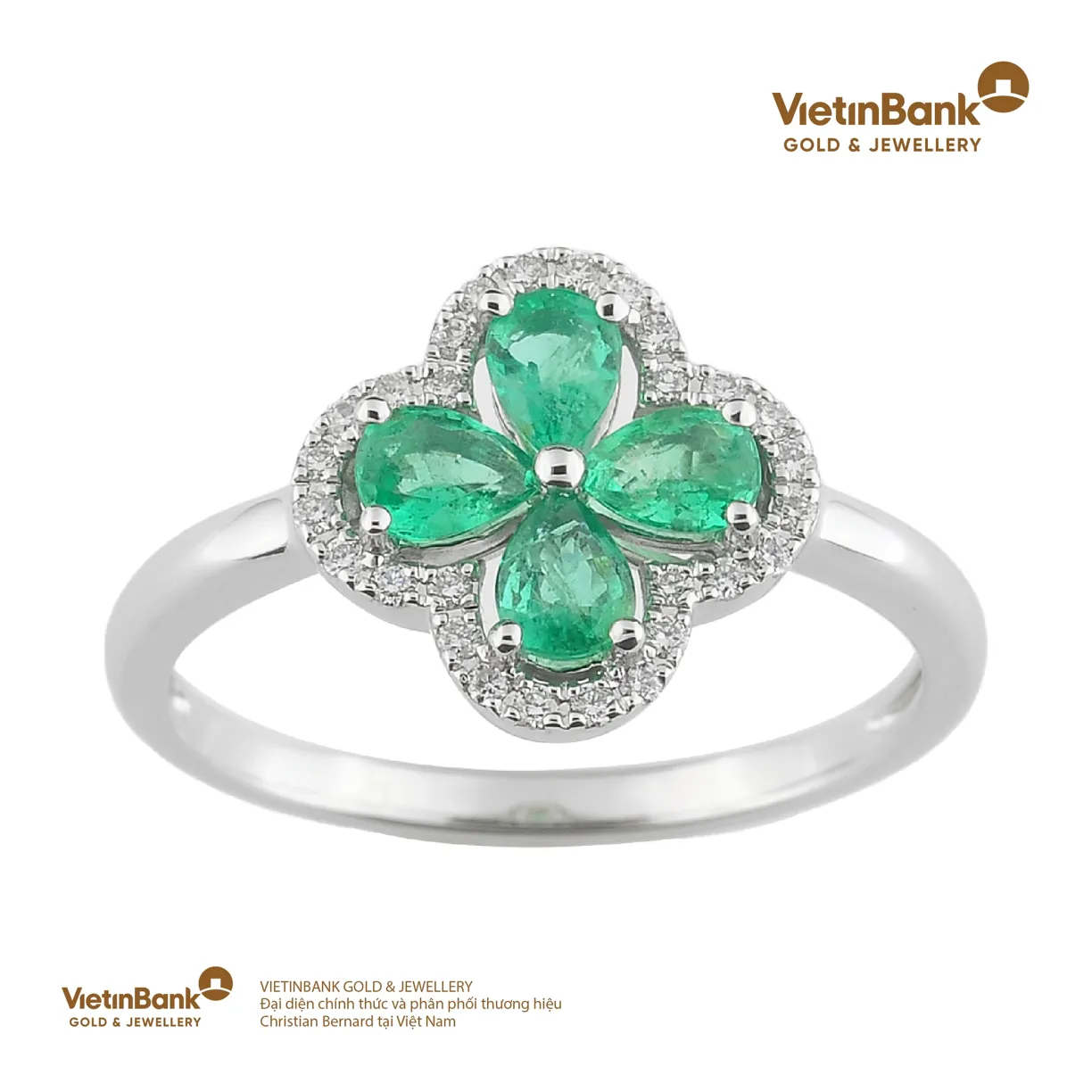 Nhẫn vàng trắng 18K (6.384) gắn Emeral (1.66) KC (0.372) 54