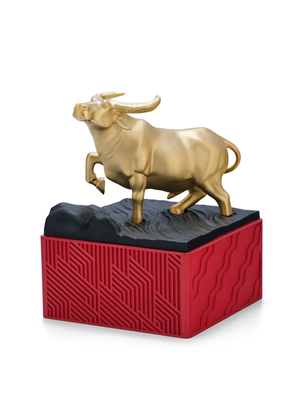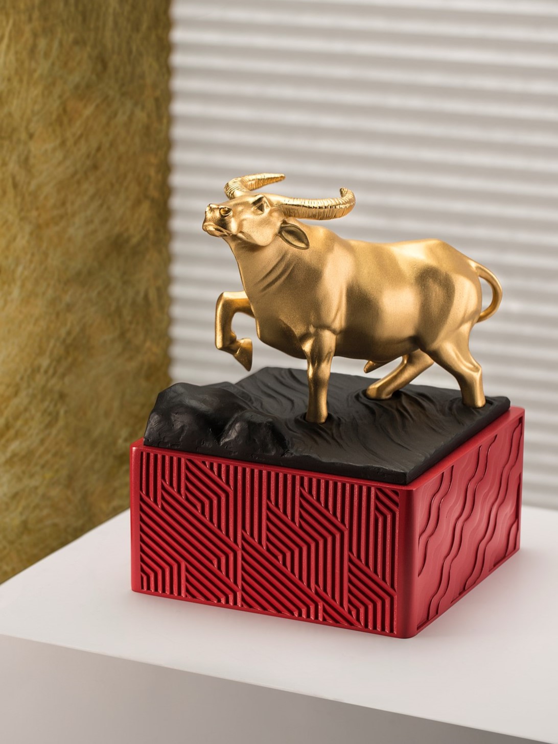 Tượng Trâu Vàng Vững Tâm là biểu tượng của tinh thần lạc quan và ý chí vững vàng suốt chặng đường chinh phục thử thách. Tư thế ngẩng cao đầu nghênh đón tương lai, lan tỏa nguồn năng lượng căng tràn sung mãn.