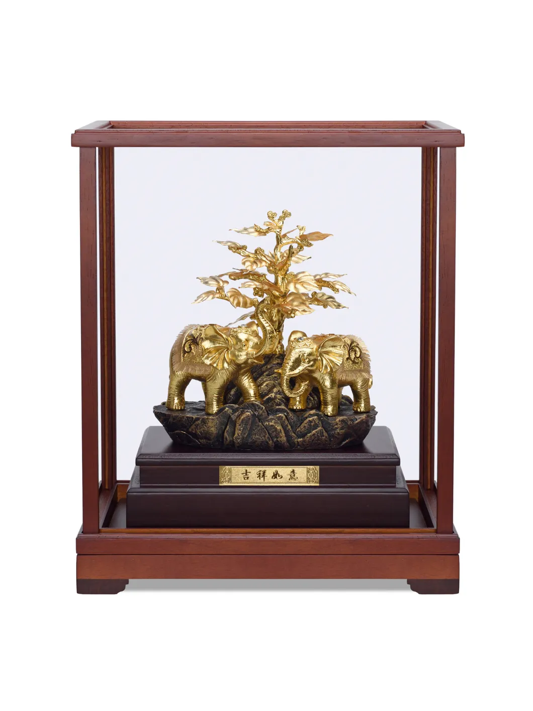 Với đặc tính sống tập thể, tình cảm, biết yêu thương và chăm sóc lẫn nhau, Voi sống theo đàn và thường được dẫn dắt bởi con đầu đàn.Voi đầu đàn có trách nhiệm đưa đàn đến vùng đất trù phú, màu mỡ và ấm no, đó chính là hướng đến giá trị thịnh vượng. Các thế hệ Voi tiếp nối dấu chân của Voi đầu đàn để cùng xây dựng đàn ngày một lớn mạnh, đó chính là giá trị thịnh vượng tiếp tục được sản sinh. Chất liệu: vàng lá. Bảo quản nơi khô ráo. Kích thước: 29x17x36cm