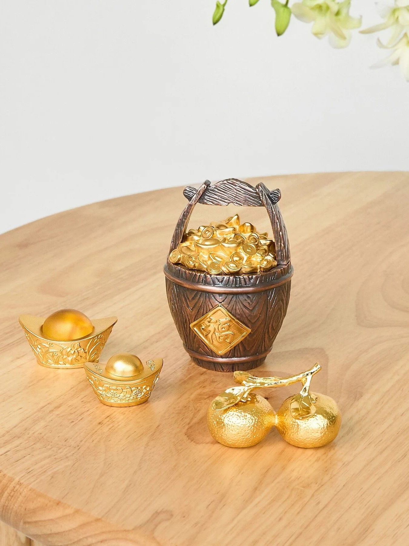 Thùng Thóc Vàng tái hiện hình ảnh chiếc thùng chứa đầy hạt gạo - biểu tượng của nền văn minh lúa nước và sự sung túc, no ấm. Sản phẩm được mạ vàng Thụy Sĩ 24K, mang vẻ đẹp rực rỡ, tinh tế và ý nghĩa sâu sắc. Được thiết kế với chi tiết hoàn mỹ, thùng thóc còn là lời chúc may mắn và sự gặt hái thành công trong cuộc sống. Ý nghĩa: Văn hóa truyền thống: Hạt gạo là biểu tượng của sức lao động, niềm tin và sự trù phú trong nền văn minh lúa nước Việt Nam. Sung túc và thịnh vượng: Hình ảnh thùng thóc đầy tràn tượng trưng cho một mùa vàng bội thu, no ấm và đầy đủ. Phong thủy: Thùng thóc vàng mang ý nghĩa phong thủy tốt lành, thu hút tài lộc và may mắn, là vật phẩm thích hợp để trưng bày trong không gian sống và làm việc. Chất liệu: Thùng thóc: Encapsulated trong vàng Thụy Sĩ 24K, đảm bảo độ bền và vẻ đẹp sang trọng. Đế: Đồng đen, tạo độ tương phản và làm nổi bật sản phẩm. Kích thước tổng thể: 45mm x 45mm x 70mm Sự lựa chọn hoàn hảo: Quà tặng ý nghĩa: Thùng Thóc Vàng là món quà lý tưởng dành tặng đối tác, người thân, hoặc bạn bè trong các dịp đặc biệt như khai trương, tân gia, hoặc kỷ niệm, mang lời chúc thịnh vượng và thành công. Trang trí sang trọng: Là điểm nhấn độc đáo trong không gian sống, bàn làm việc, hoặc phòng họp, thể hiện phong cách tinh tế và sự am hiểu văn hóa truyền thống. Thùng Thóc Vàng - biểu tượng của sự đủ đầy, mang lại cảm giác bình an và may mắn cho chủ sở hữu.