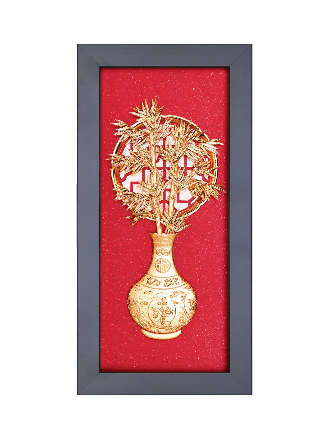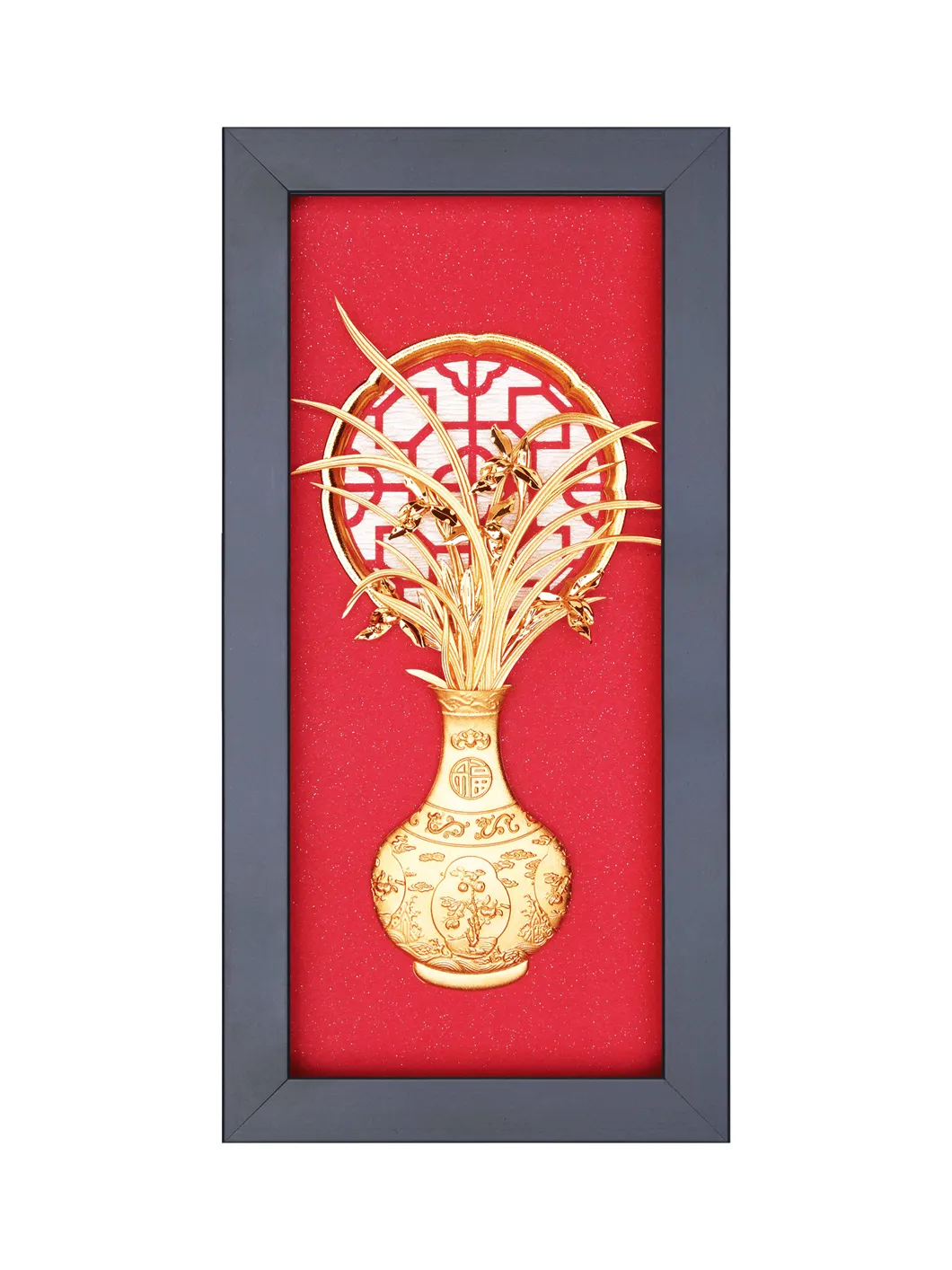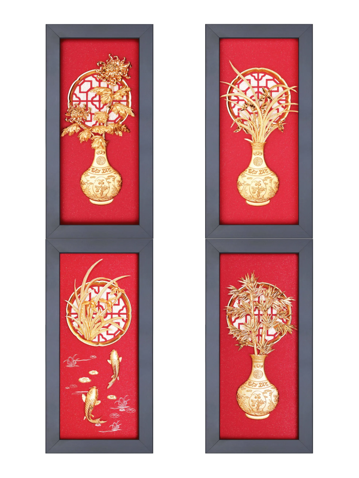 Tranh Bình Hoa là tác phẩm nghệ thuật mang phong cách thanh lịch, được chế tác từ vàng lá với hình ảnh bình hoa rực rỡ các loài hoa của bốn mùa. Bức tranh không chỉ là món đồ trang trí sang trọng mà còn chứa đựng ý nghĩa phong thủy sâu sắc, biểu trưng cho sự bình yên, hòa hợp và cát tường. Ý nghĩa: Bình hoa trong phong thủy là biểu tượng của sự cân bằng và hài hòa, mang lại cảm giác bình an và may mắn cho gia chủ. Việc sử dụng các loài hoa của bốn mùa còn thể hiện sự trọn vẹn, giàu có và thịnh vượng quanh năm. Các loài hoa được tái hiện tinh xảo và sống động: + Hoa mai: Màu vàng rực rỡ biểu trưng cho hy vọng, tương lai tươi sáng và sự giàu sang phú quý. + Hoa lan: Đại diện cho sự thanh lịch, cao quý và tài lộc. + Hoa cúc: Tượng trưng cho trường thọ, phúc lộc và sự an yên. + Hoa trúc: Biểu hiện của sự kiên cường, bền bỉ và trường tồn. Vàng lá nguyên chất làm tăng thêm vẻ đẹp cao cấp và giá trị trường tồn của bức tranh, đồng thời tượng trưng cho sự thịnh vượng và vĩnh cửu. Bức tranh Bình Hoa giúp tạo ra năng lượng tích cực, mang lại hòa hợp trong gia đình, công việc thuận lợi và cuộc sống viên mãn. Đây còn là biểu tượng của sự thịnh vượng và cát tường trong phong thủy. Chất liệu: Vàng lá nguyên chất, đảm bảo chất lượng cao cấp và độ bền lâu dài. Kích thước: 13 x 26 cm Sự lựa chọn hoàn hảo: Tranh Bình Hoa là món quà ý nghĩa, phù hợp tặng người thân, bạn bè, hoặc đối tác trong các dịp đặc biệt như tân gia, khai trương, hay kỷ niệm. Với thiết kế tinh tế và ý nghĩa phong thủy tốt lành, bức tranh không chỉ làm đẹp không gian sống mà còn gửi gắm lời chúc bình an, thịnh vượng và hạnh phúc trọn vẹn đến người nhận.