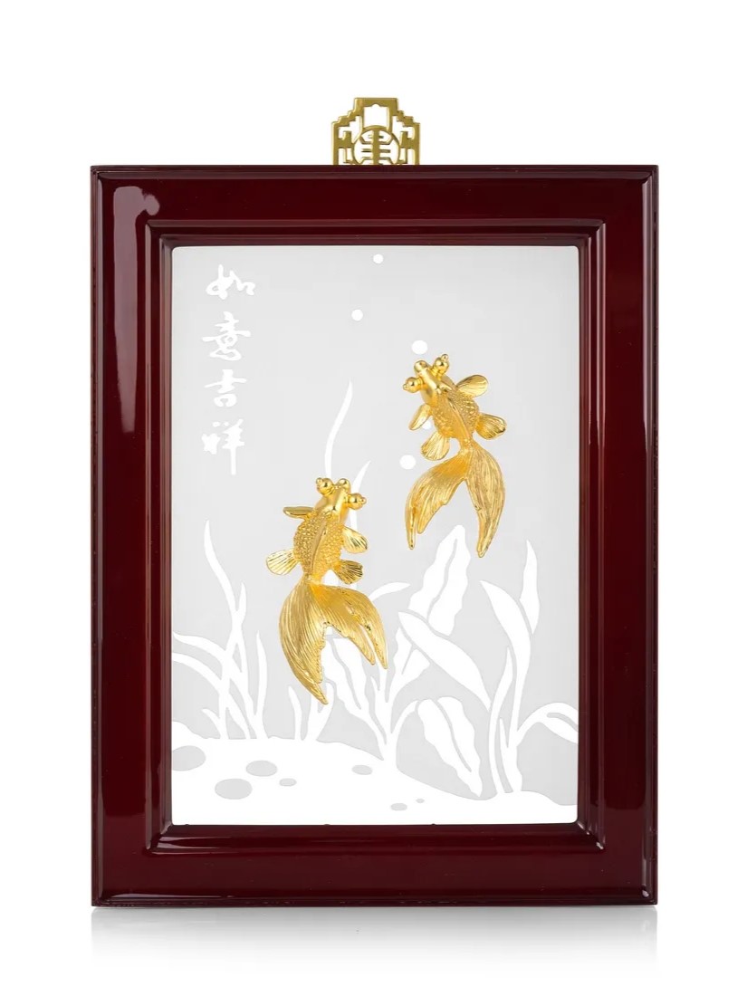 Biểu Tượng Của Phú Quý & Sung Túc Bức tranh cá vàng và hoa mẫu đơn khắc họa hình ảnh 9 chú cá vàng đuôi xoè bơi lội tung tăng dưới tán hoa mẫu đơn nở rộ, trong làn nước gợn sóng dịu dàng mùa xuân. Tác phẩm được chế tác bằng pewter cao cấp, chạm khắc tinh xảo với nhiều lớp nổi chìm, tạo nên chiều sâu sinh động và sang trọng. Ý nghĩa phong thủy Chín chú cá vàng: trong tiếng Hán, số 9 đồng âm với “trường cửu”, tượng trưng cho sự sung túc, may mắn dài lâu. Hoa mẫu đơn: loài hoa của phú quý, thịnh vượng và hạnh phúc viên mãn. Dòng nước xuân: biểu trưng cho dòng chảy tài lộc hanh thông, thịnh vượng bền vững. Dòng chữ 富貴有余 (Phú quý hữu dư) khắc trên nền nước mang lời chúc: “Tiền tài dư dả, cuộc sống sung túc đủ đầy”. Chất liệu & chế tác Chế tác từ pewter cao cấp bởi nghệ nhân Royal Selangor. Khung tranh tinh tế, kèm bảng khắc cá nhân hóa (2cm x 8cm) để ghi dấu ấn riêng. Nghệ thuật phù điêu nhiều tầng tạo hiệu ứng nổi bật và sống động. Kích thước Cao: 39 cm Rộng: 21 cm Sâu: 4.5 cm Sự lựa chọn hoàn hảo Bức tranh cá vàng và hoa mẫu đơn là quà tặng phong thủy – nghệ thuật đầy ý nghĩa: Cho gia chủ: mang lại sự may mắn, phú quý và cuộc sống sung túc dài lâu. Cho doanh nhân & đối tác: lời chúc làm ăn phát đạt, tài lộc dư dả, sự nghiệp hưng thịnh. Cho không gian sống & làm việc: vừa là tác phẩm nghệ thuật, vừa là biểu tượng thịnh vượng, phù hợp để trưng bày tại phòng khách, phòng làm việc hoặc văn phòng công ty. 👉 Đây chính là món quà cao cấp, sang trọng và đầy giá trị tinh thần, lý tưởng để tri ân, chúc phúc hay trang trí phong thủy.