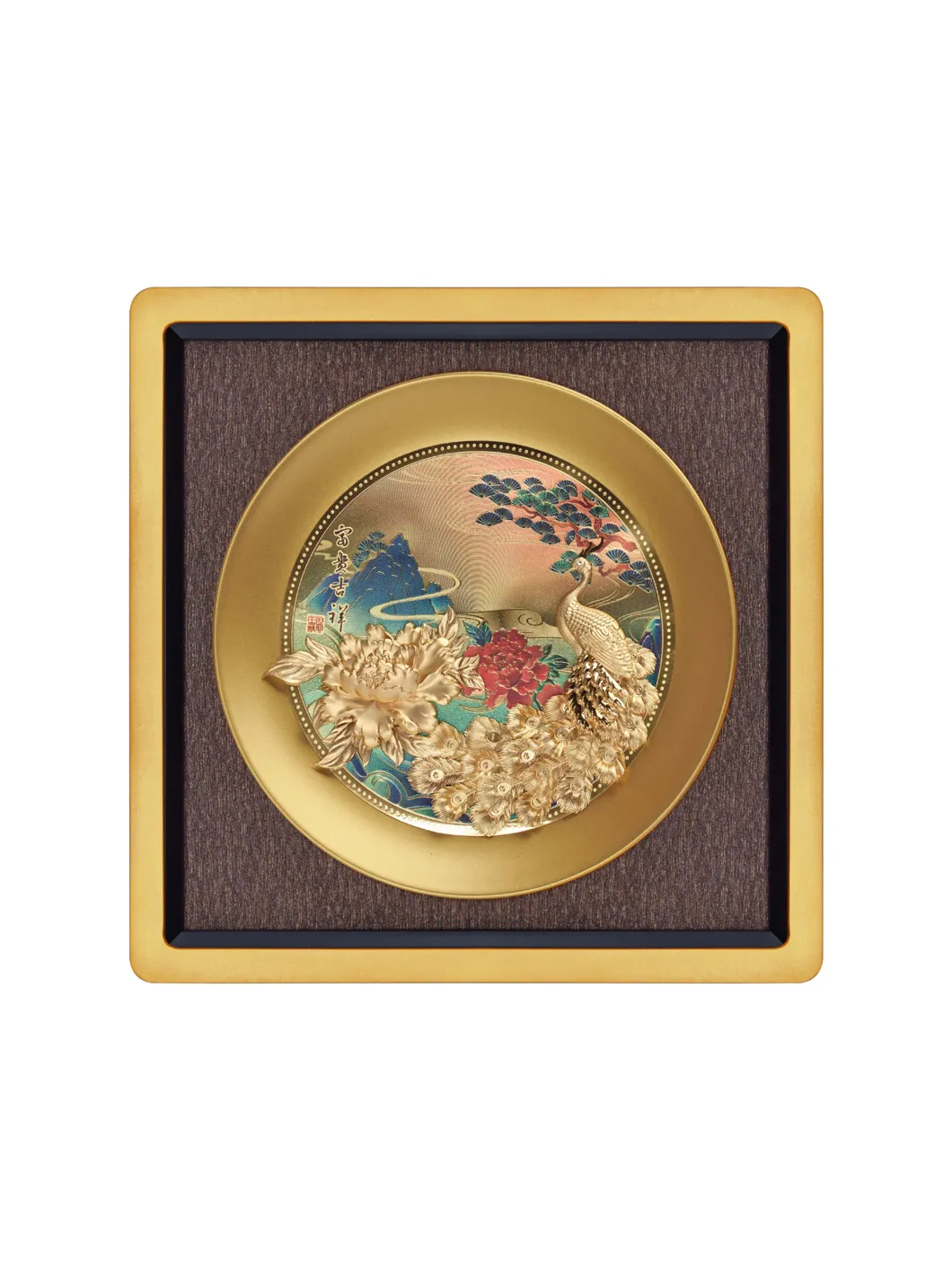Tranh chim công được coi là biểu tượng cho tiền tài, may mắn, thuận lợi cho việc phát triển công danh sự nghiệp. Đồng thời thu hút được năng lượng tích cực, vượng khí tốt và còn là biểu tượng cho tình cảm vợ chồng bền chặt keo sơn. Chất liệu: vàng lá. Bảo quản nơi khô ráo. Kích thước : 30x30cm