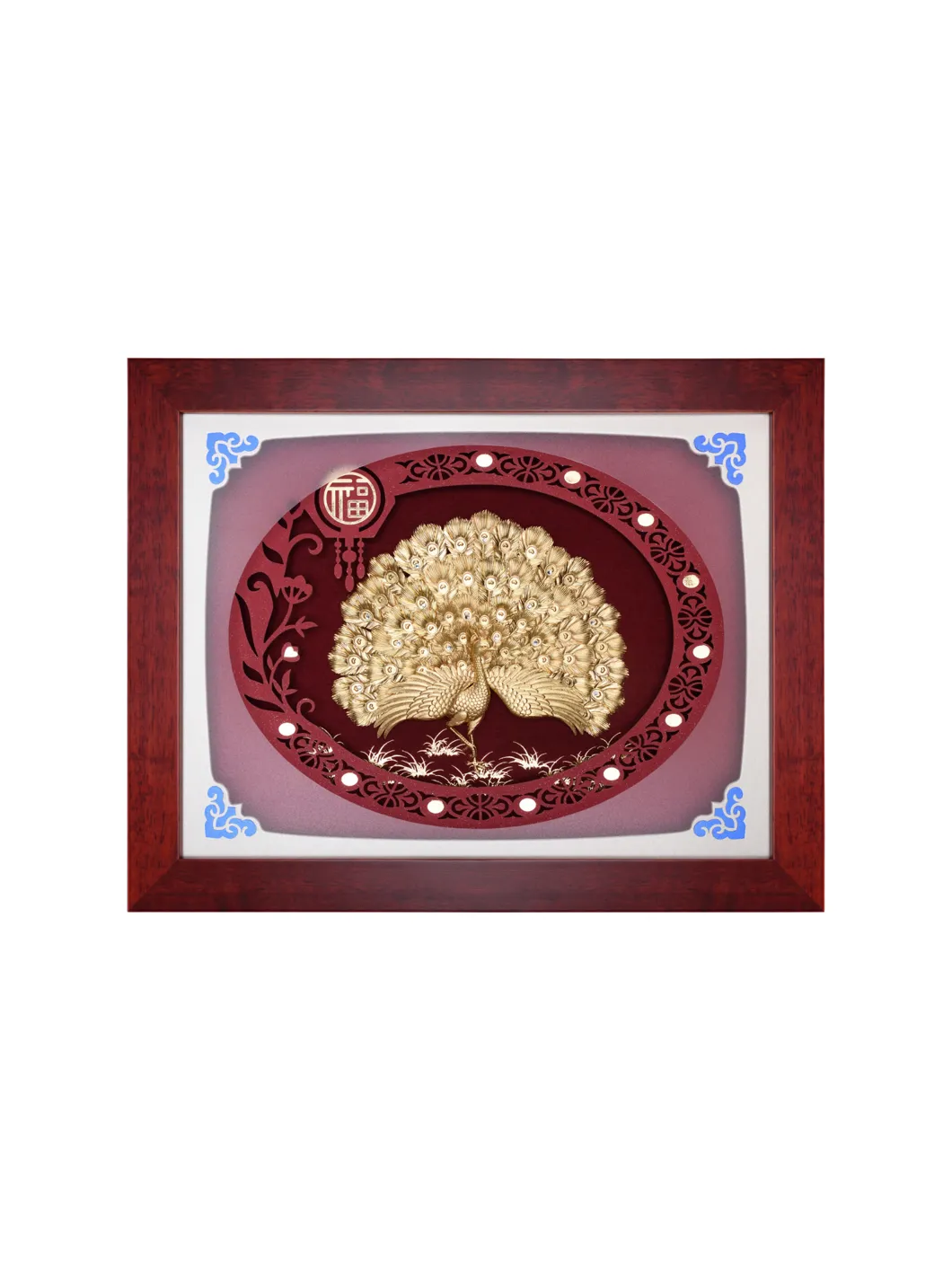 Tranh Công Đại Cát 26x33 là sự kết hợp hoàn hảo giữa nghệ thuật chế tác vàng lá và biểu tượng phong thủy truyền thống. Với hình ảnh chim công mềm mại và uyển chuyển, bức tranh mang đến không chỉ vẻ đẹp trang nhã mà còn ý nghĩa phong thủy may mắn, tài lộc và sự hòa hợp. Ý nghĩa: Chim công từ lâu đã được xem là biểu tượng của tiền tài, thịnh vượng và thành công. Bức tranh không chỉ giúp tăng cường năng lượng tích cực mà còn mang lại sự may mắn trong sự nghiệp và tình cảm gia đình. Chim công với bộ lông óng ánh được khắc họa sống động và tinh tế, biểu tượng cho sự quyền uy, cao quý và vẻ đẹp thanh lịch. Các chi tiết dát vàng lấp lánh làm tăng thêm sự nổi bật và sang trọng của bức tranh. Vàng lá nguyên chất không chỉ làm tăng giá trị của bức tranh mà còn tượng trưng cho sự giàu có, trường tồn và vĩnh cửu. Trong phong thủy, chim công được cho là thu hút năng lượng tích cực và mang lại vượng khí tốt. Bức tranh còn là biểu tượng của tình cảm vợ chồng bền chặt, hạnh phúc viên mãn và sự hòa thuận trong gia đình. Chất liệu: Vàng lá nguyên chất, chế tác tinh xảo với độ bền cao. Kích thước: 26 x 33 cm Sự lựa chọn hoàn hảo: Tranh Công Đại Cát 26x33 là món quà mang ý nghĩa đặc biệt, thích hợp dành tặng người thân, bạn bè, hoặc đối tác trong những dịp quan trọng như lễ cưới, kỷ niệm ngày cưới, hoặc khai trương. Bức tranh không chỉ tô điểm không gian sống thêm phần sang trọng mà còn như lời chúc về tài lộc, may mắn và hạnh phúc viên mãn cho người nhận.