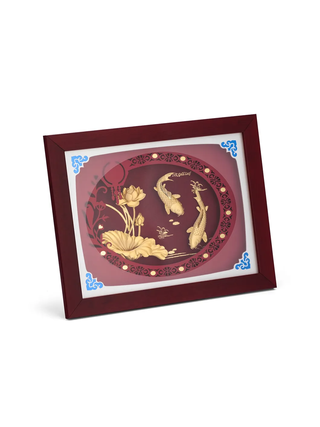 Tranh Đôi Cá Chép Hoa Sen 26x33 là một tác phẩm nghệ thuật phong thủy tinh xảo, được chế tác từ vàng lá cao cấp. Với hình ảnh đôi cá chép quấn quanh hoa sen, bức tranh không chỉ mang đến vẻ đẹp thanh nhã mà còn gửi gắm thông điệp về sự dư dả, phú quý và thịnh vượng liên tục. Ý nghĩa: Cá chép và hoa sen trong văn hóa Á Đông là biểu tượng cho sự "dư dả liên tục," thể hiện cuộc sống đầy đủ, phú quý và hạnh phúc. Đây là thông điệp về sự ổn định, không bao giờ thiếu thốn trong cuộc sống và công việc. Đôi cá chép được khắc họa sống động, kết hợp cùng hoa sen thanh tao tạo nên một bố cục hài hòa và cuốn hút. Ánh vàng rực rỡ từ chi tiết dát vàng tôn lên sự sang trọng và giá trị cao cấp của bức tranh. Vàng lá nguyên chất không chỉ tạo nên vẻ đẹp bền vững mà còn biểu trưng cho sự cao quý, thịnh vượng và trường tồn. Tranh Đôi Cá Chép Hoa Sen mang năng lượng phong thủy tích cực, thu hút tài lộc, may mắn và bình an. Đôi cá chép tượng trưng cho sự kiên trì, còn hoa sen đại diện cho sự thanh cao và thuần khiết, kết hợp mang lại sự cân bằng và thịnh vượng cho gia đình hoặc nơi làm việc. Chất liệu: Vàng lá nguyên chất, đảm bảo độ bền và chất lượng vượt thời gian. Kích thước: 26 x 33 cm Sự lựa chọn hoàn hảo: Tranh Đôi Cá Chép Hoa Sen 26x33 là món quà đầy ý nghĩa dành tặng người thân, bạn bè, hoặc đối tác trong các dịp đặc biệt như tân gia, khai trương, hoặc kỷ niệm. Với thiết kế tinh xảo và ý nghĩa phong thủy tốt lành, bức tranh không chỉ làm đẹp không gian mà còn gửi gắm lời chúc về sự thịnh vượng, dư dả và hạnh phúc bền lâu.