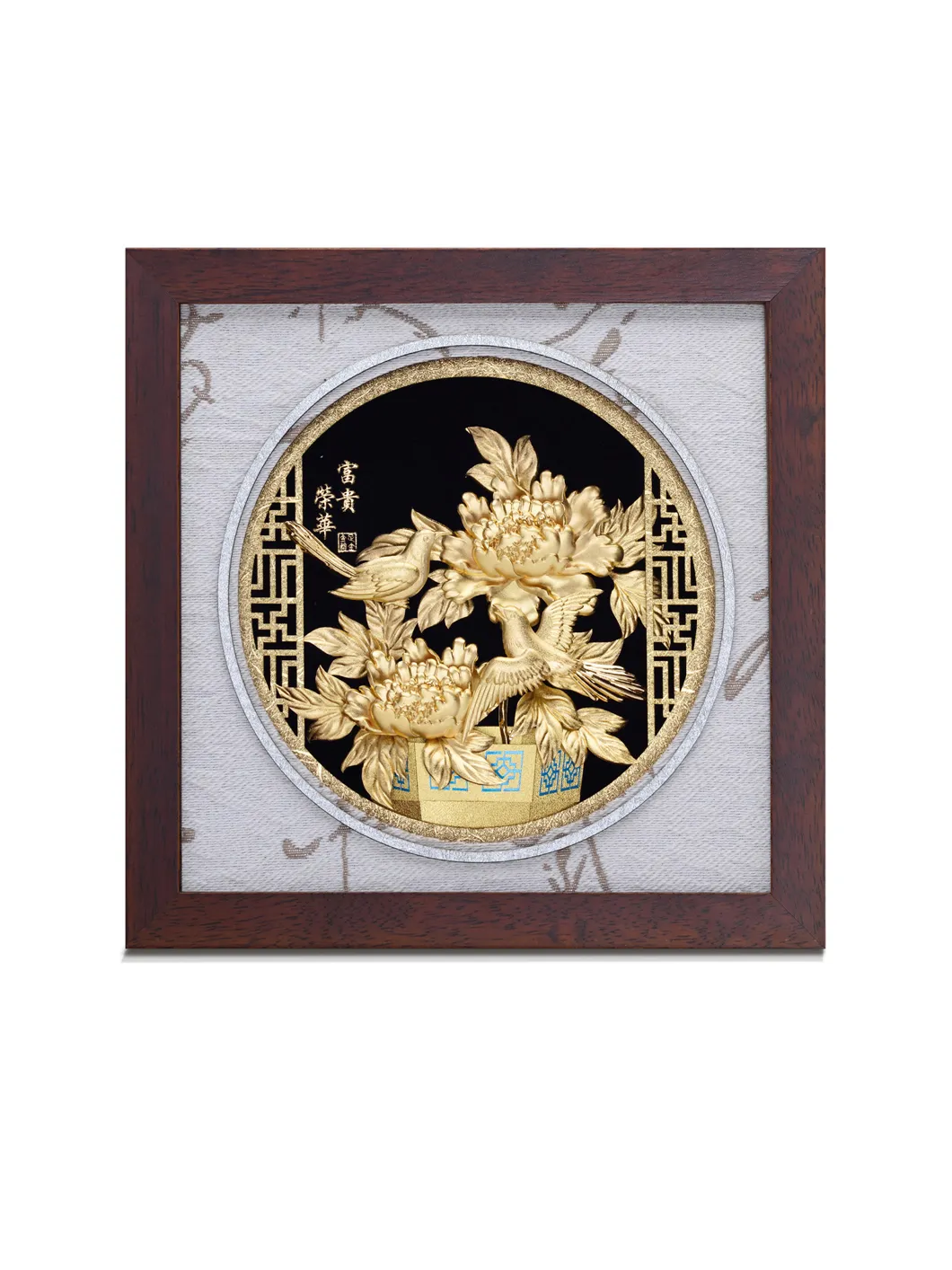 Tranh Hoa Mẫu Đơn 23x23 được chế tác tinh xảo với vàng lá 24K, mang đến vẻ đẹp rực rỡ và sang trọng. Hình ảnh hoa mẫu đơn – biểu tượng của sự giàu sang, phú quý – kết hợp hài hòa trên nền tranh thanh lịch, tạo nên món quà ý nghĩa và giá trị phong thủy cao. Ý nghĩa: Hoa mẫu đơn là biểu tượng của sự thịnh vượng, quyền lực và vẻ đẹp kiêu sa. Trong phong thủy, hoa mẫu đơn còn đại diện cho hôn nhân hạnh phúc và sự chung thủy, mang đến cuộc sống sung túc, đầy đủ và gia đình êm ấm. Thiết kế vuông vắn, nhỏ gọn với tông màu vàng nổi bật làm tôn lên sự cao quý và tinh tế. Đường nét chạm khắc tỉ mỉ, tái hiện vẻ đẹp lộng lẫy của hoa mẫu đơn một cách chân thực và sống động. Vàng lá 24K không chỉ tăng giá trị thẩm mỹ mà còn thể hiện sự trường tồn, may mắn, và năng lượng tích cực trong phong thủy. Chất liệu: Vàng lá 24K cao cấp, được chế tác thủ công. Nền tranh sử dụng vật liệu giấy cao cấp đảm bảo độ bền và thẩm mỹ. Kích thước: 23 x 23 cm Sự lựa chọn hoàn hảo: Tranh Hoa Mẫu Đơn 23x23 là món quà tuyệt vời dành tặng người thân, đối tác hoặc khách hàng trong những dịp quan trọng như lễ Tết, kỷ niệm ngày cưới, sinh nhật, hay tân gia. Bức tranh không chỉ mang giá trị nghệ thuật mà còn chứa đựng lời chúc phúc về sự thịnh vượng, hạnh phúc và giàu sang. Đây là lựa chọn hoàn hảo để trang trí không gian sống, mang đến vẻ đẹp tinh tế và ý nghĩa sâu sắc.